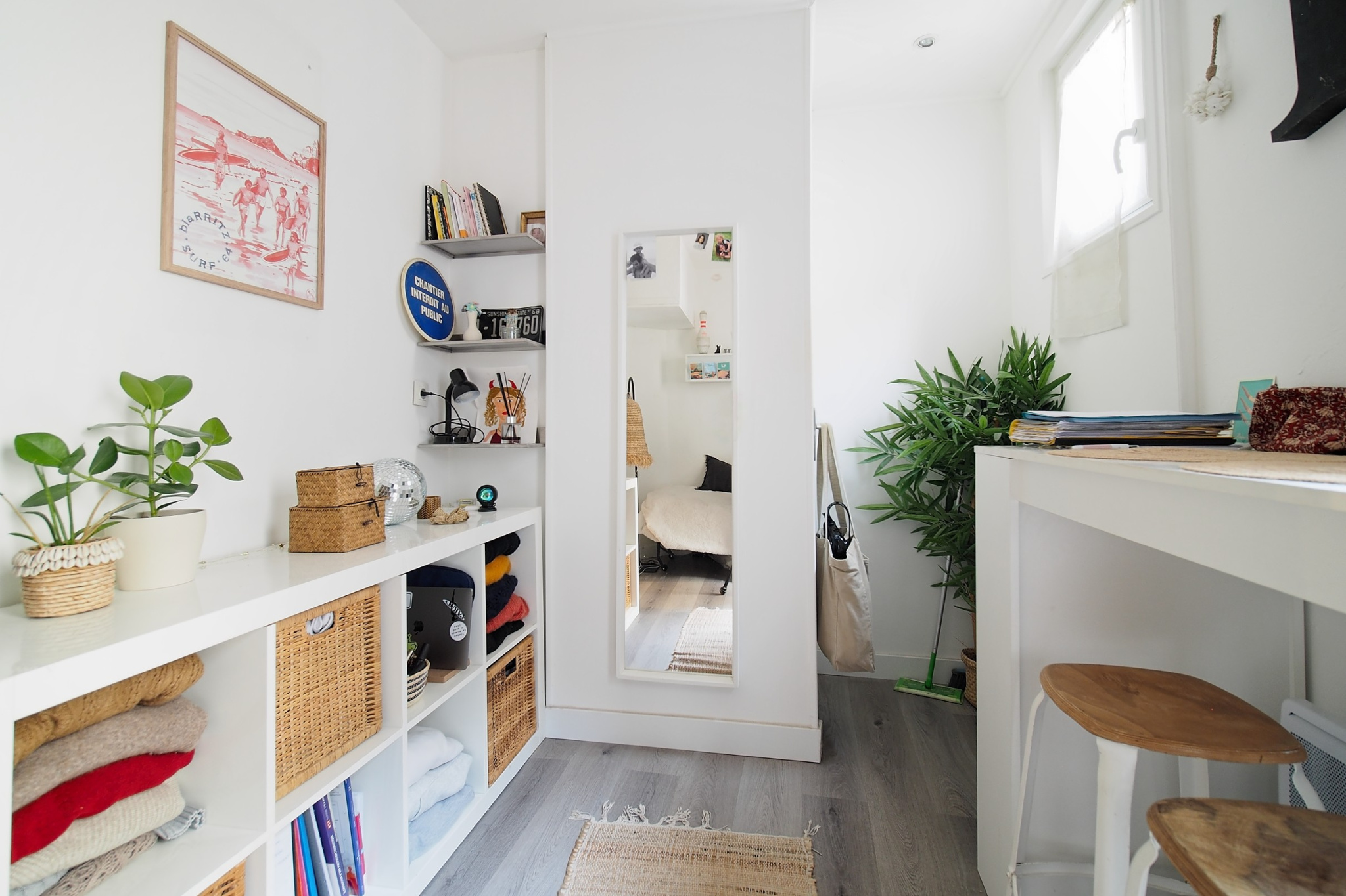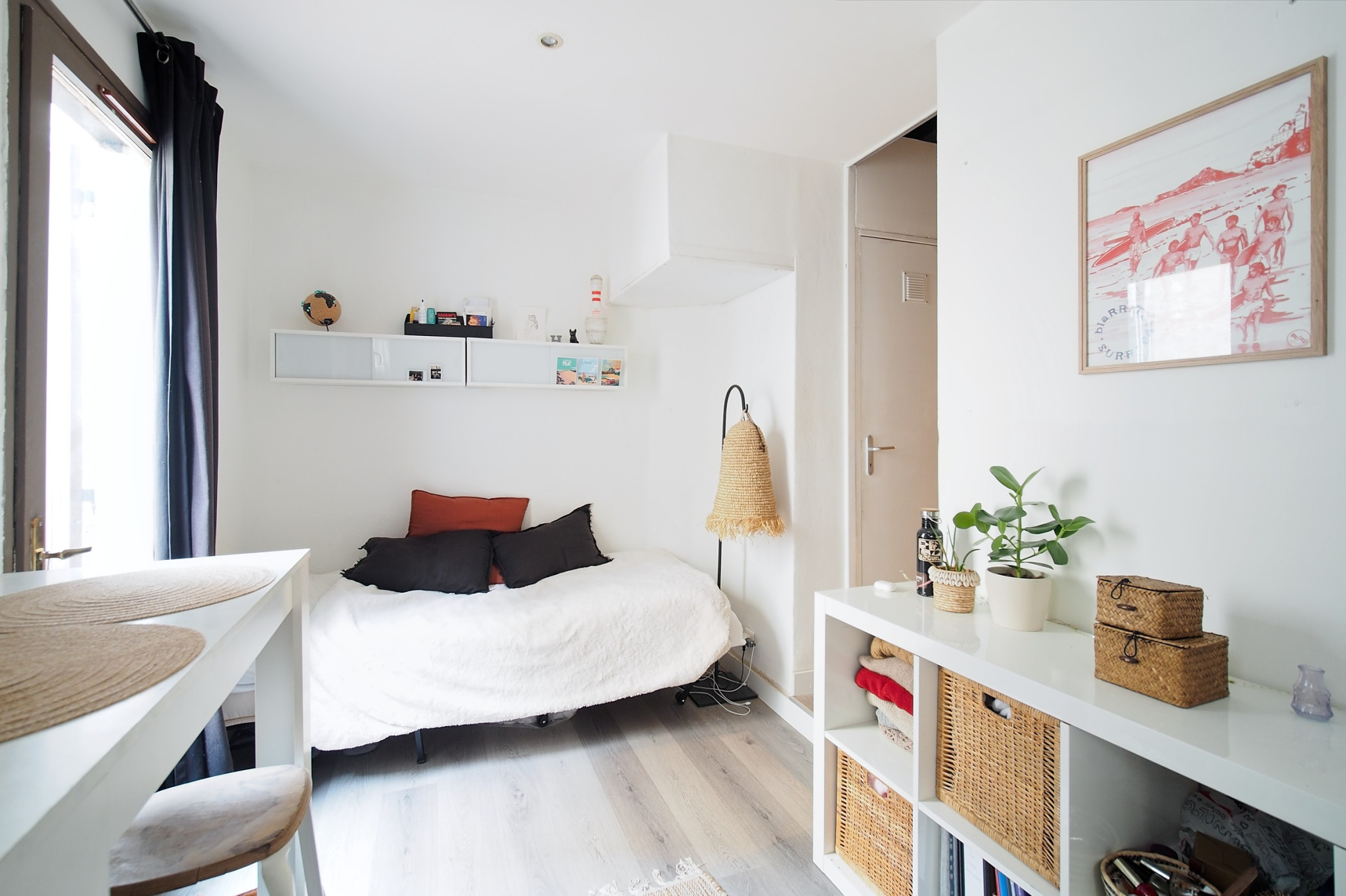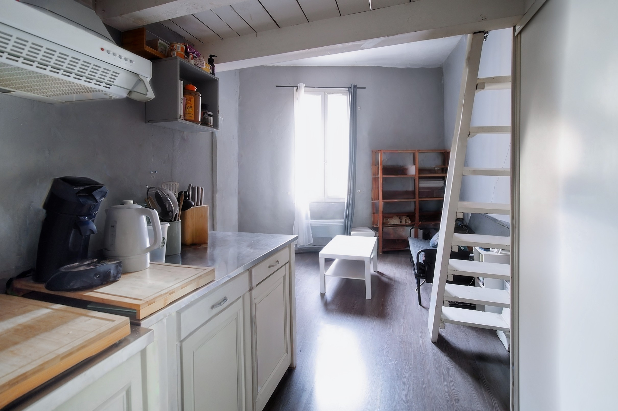 Le premier studio d'une surface de 18,17m2 se distingue par sa luminosité et son agencement fonctionnel. Il dispose d'une kitchenette ouverte sur la pièce à vivre, d'une mezzanine, parfaite pour un espace nuit intimiste, ainsi qu'une salle d'eau moderne et des wc. DPE : D