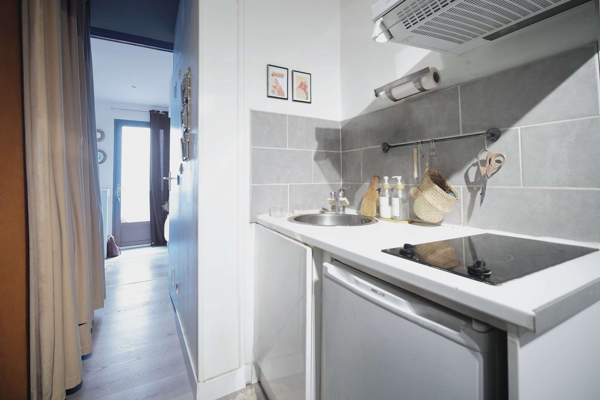 Le second studio d'une surface de 15,24 m2 est un véritable cocon. Il est composé d'une kitchenette aménagée et équipée bien pensée, une pièce à vivre ainsi qu'une salle d'eau et wc séparé.Son atout majeur est sans conteste sa terrasse donnant sur une cour d'une surface de 3,36m2 idéal pour profiter de moments de détente en plein air. DPE : E