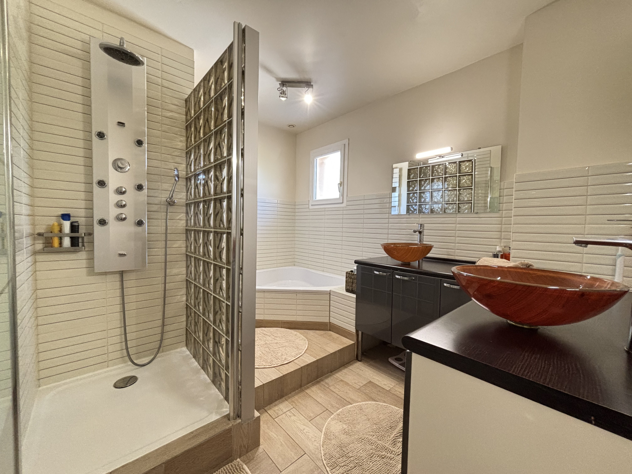Côté confort, rien ne manque : double vitrage, climatisation réversible, chauffage électrique, volets et portail motorisés.La maison est parfaitement entretenue -- aucun travaux à prévoir.
