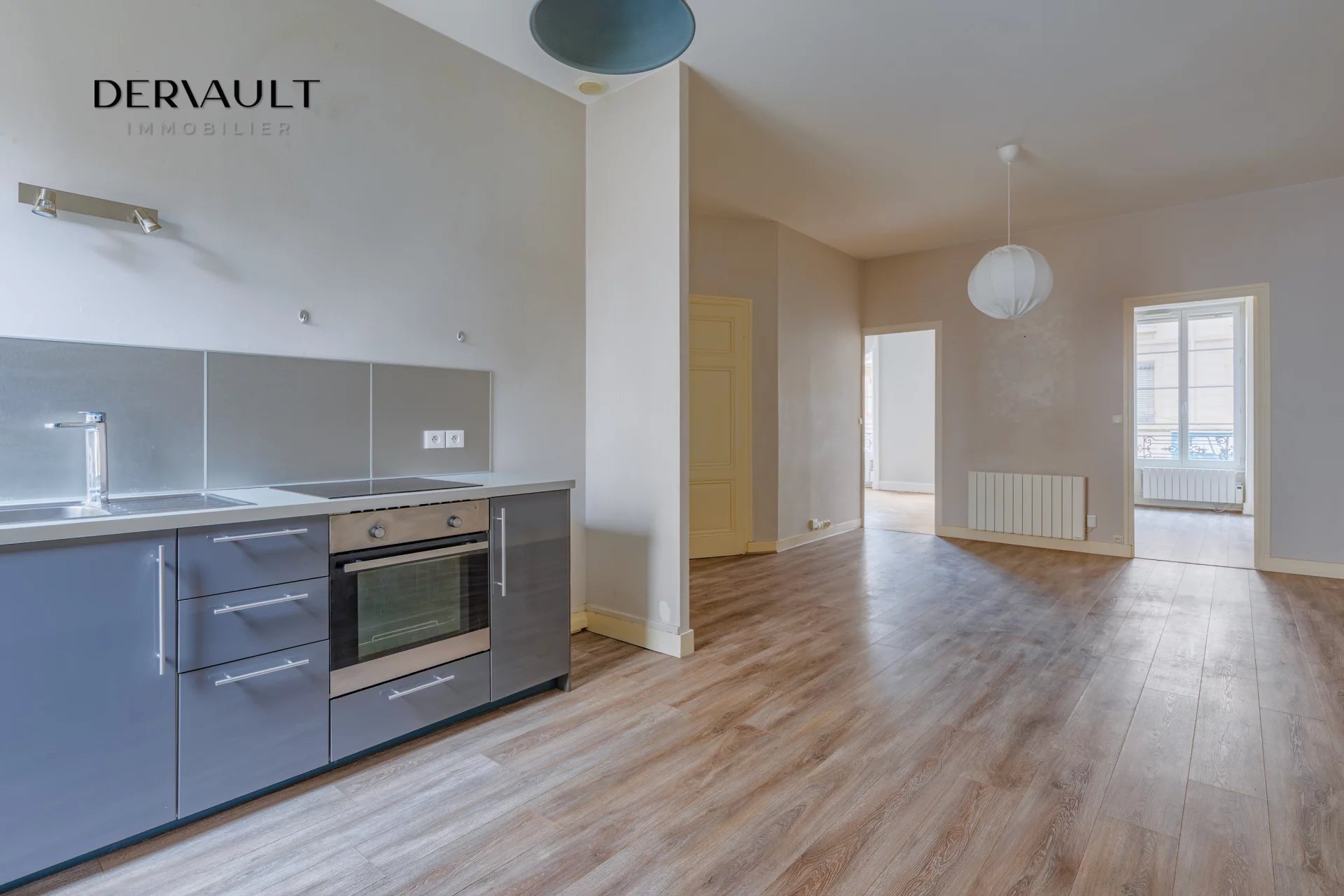 L’appartement se compose aujourd’hui d’une entrée spacieuse ouverte sur la cuisine, d’un vaste séjour, de deux chambres avec rangements, d’une salle de bains et d’un WC indépendant.
