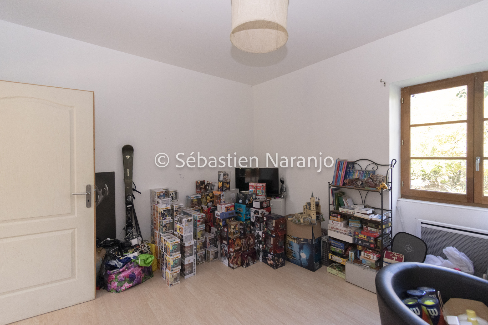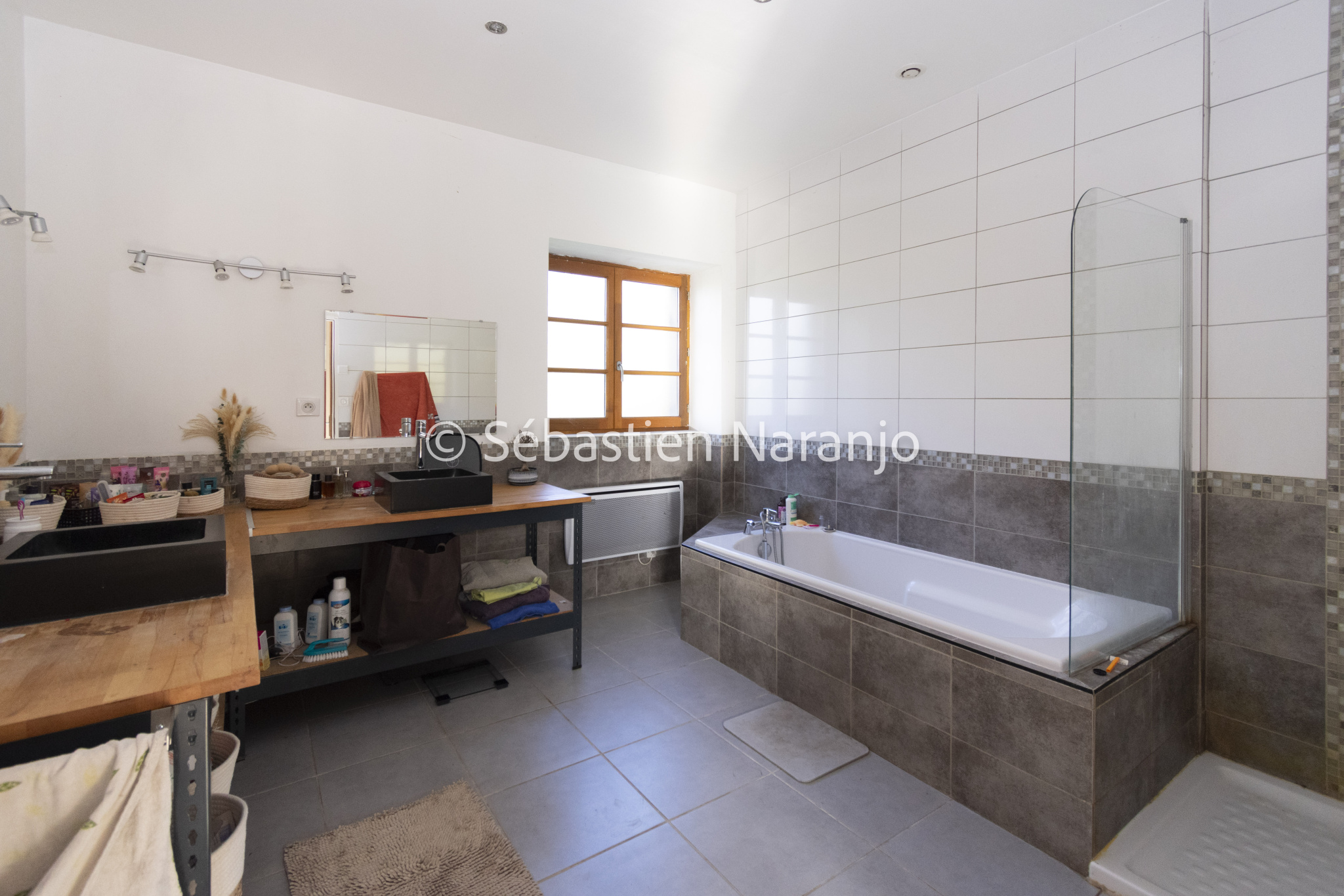 Elle se compose d'un grand salon traversant équipé d'un poêle à bois et ouvrant sur le jardin, d'une cuisine récente avec piano de cuisson, d'une salle de bain avec baignoire et douche, ainsi que de quatre chambres dont deux à rafraîchir.
