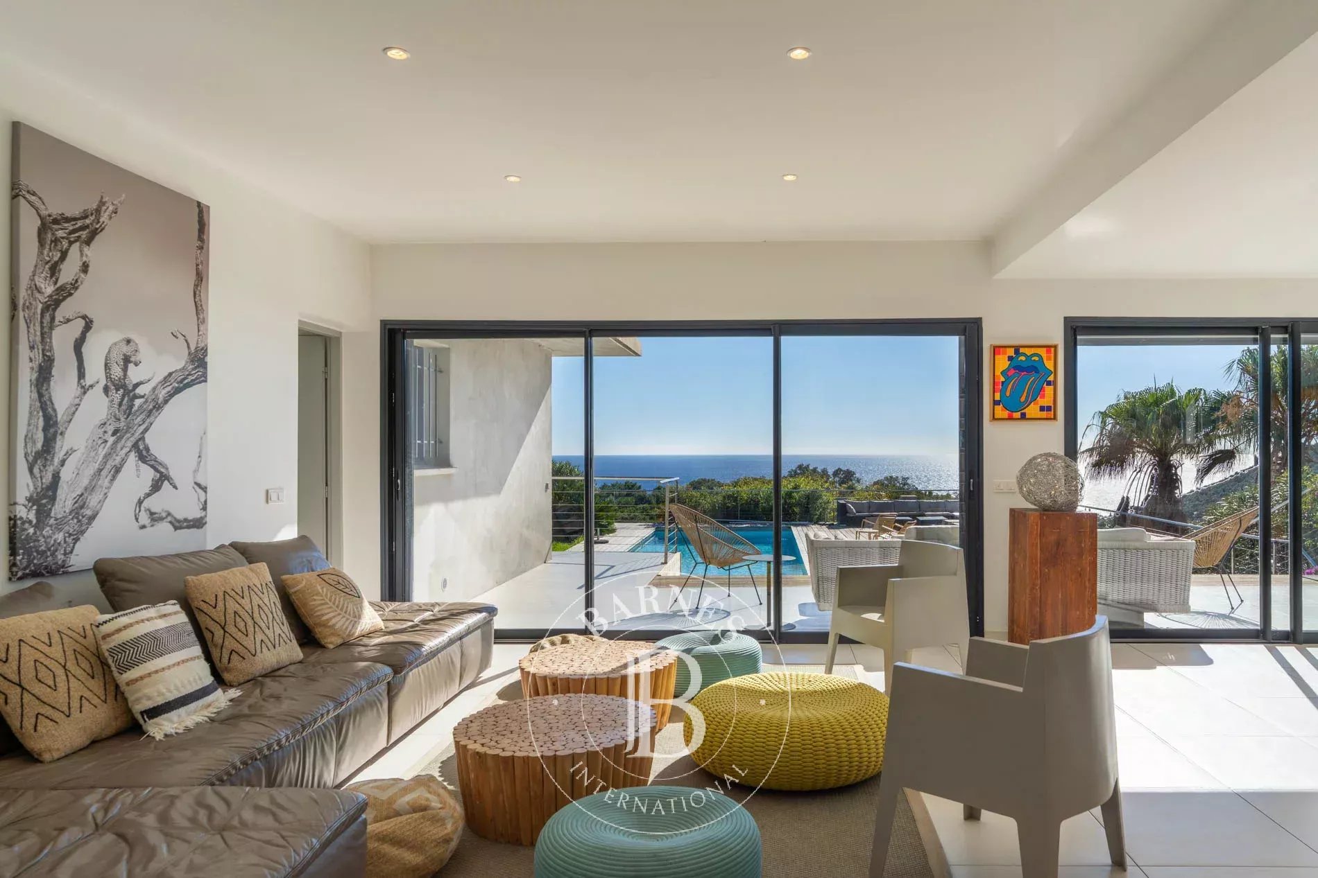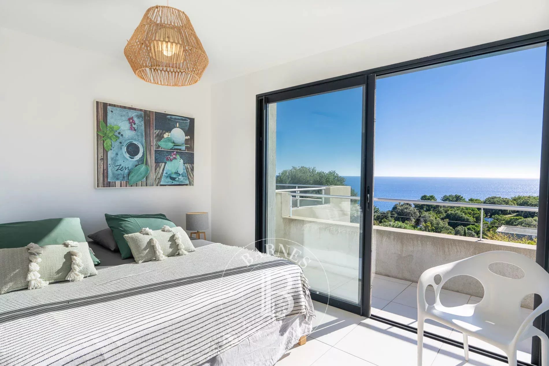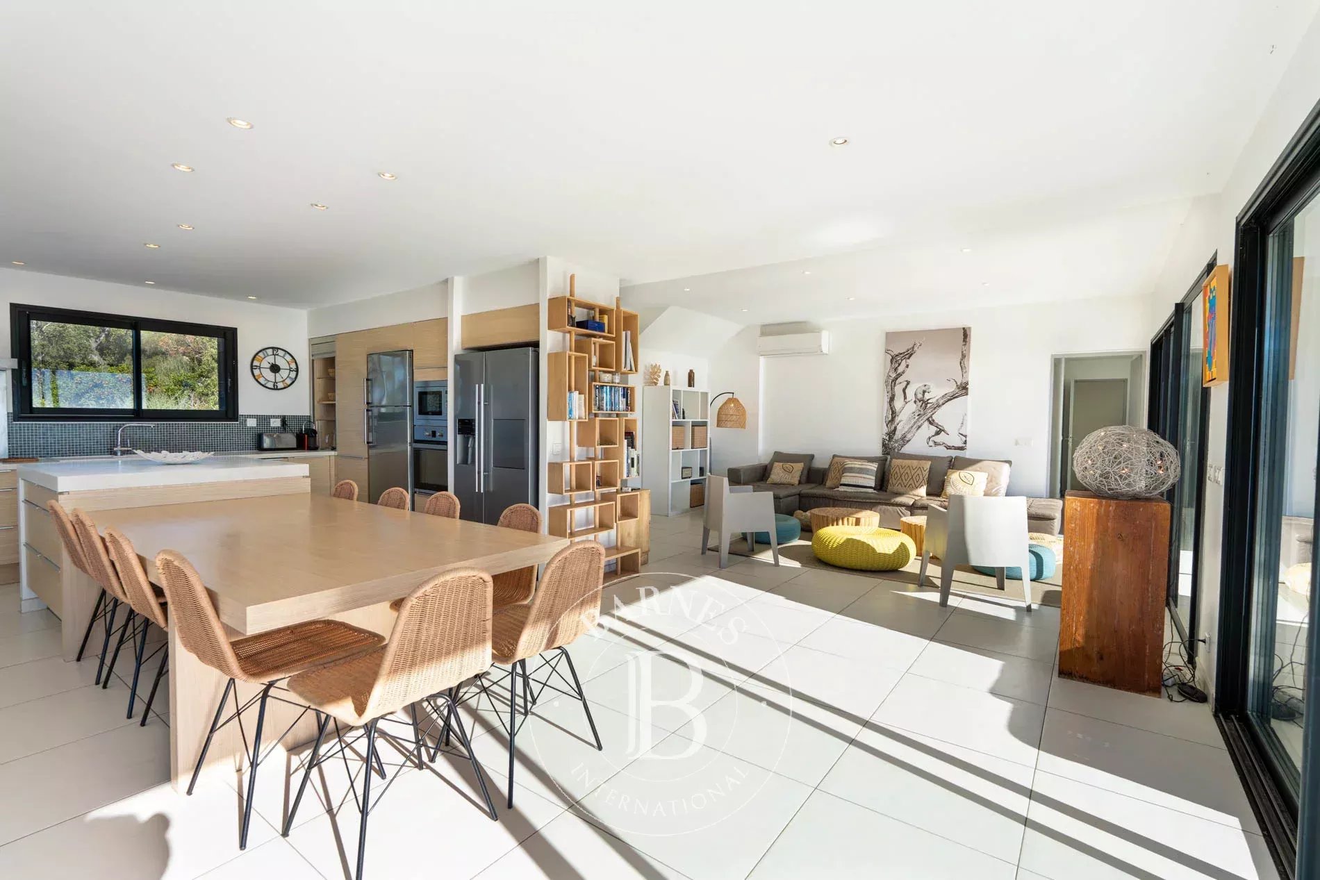 D’une superficie d’environ 250 m², répartis sur 3 niveaux, elle comprend un salon, une salle à manger et une cuisine entièrement équipée avec îlot central, le tout s’ouvrant sur une terrasse vue mer et une seconde terrasse couverte attenante à la cuisine.