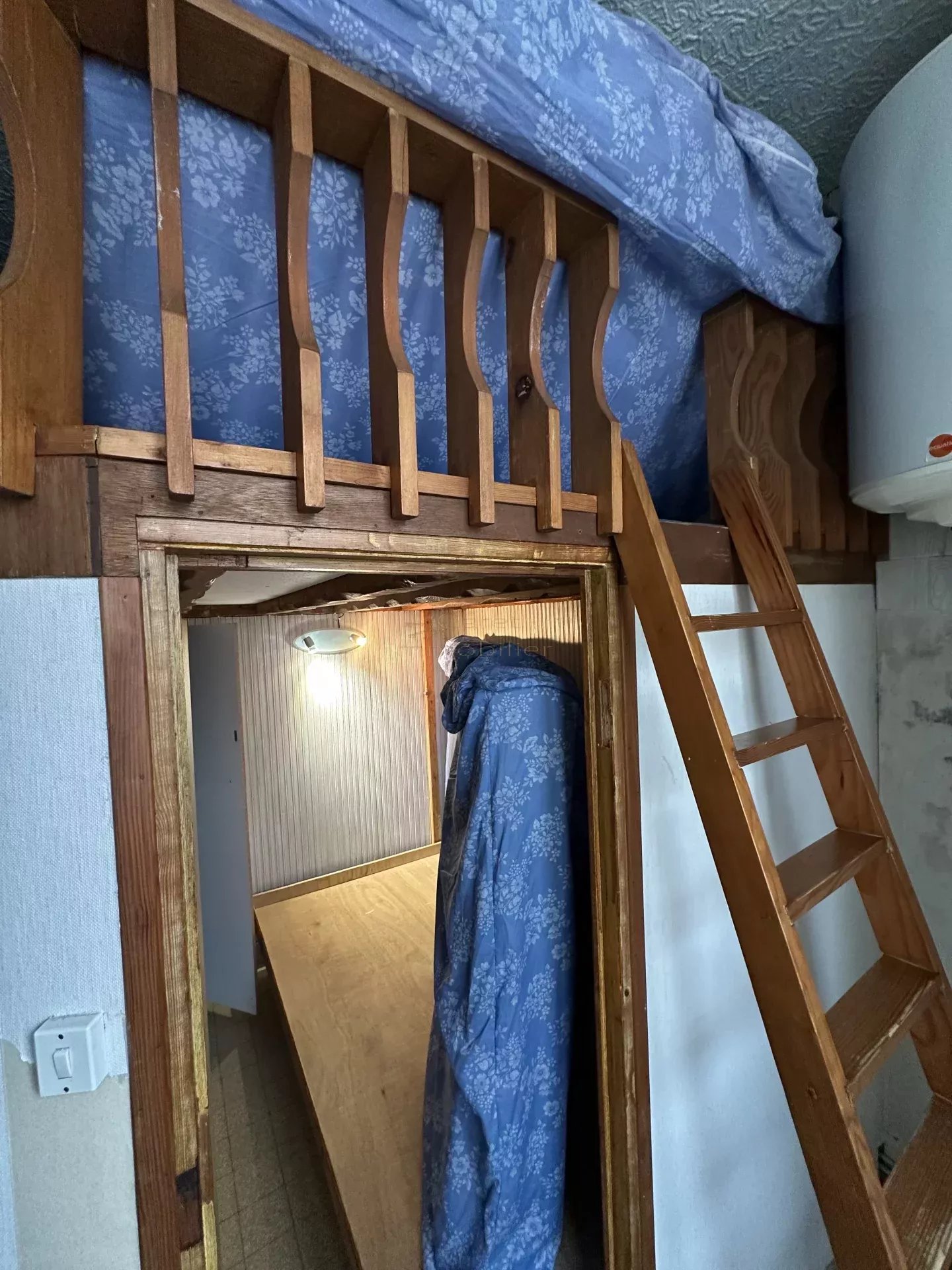 Appartement à 20m de la plage, comprenant : un séjour avec cuisine ouverte donnant accès à un balcon, une chambre, une salle de douche et un toilette.