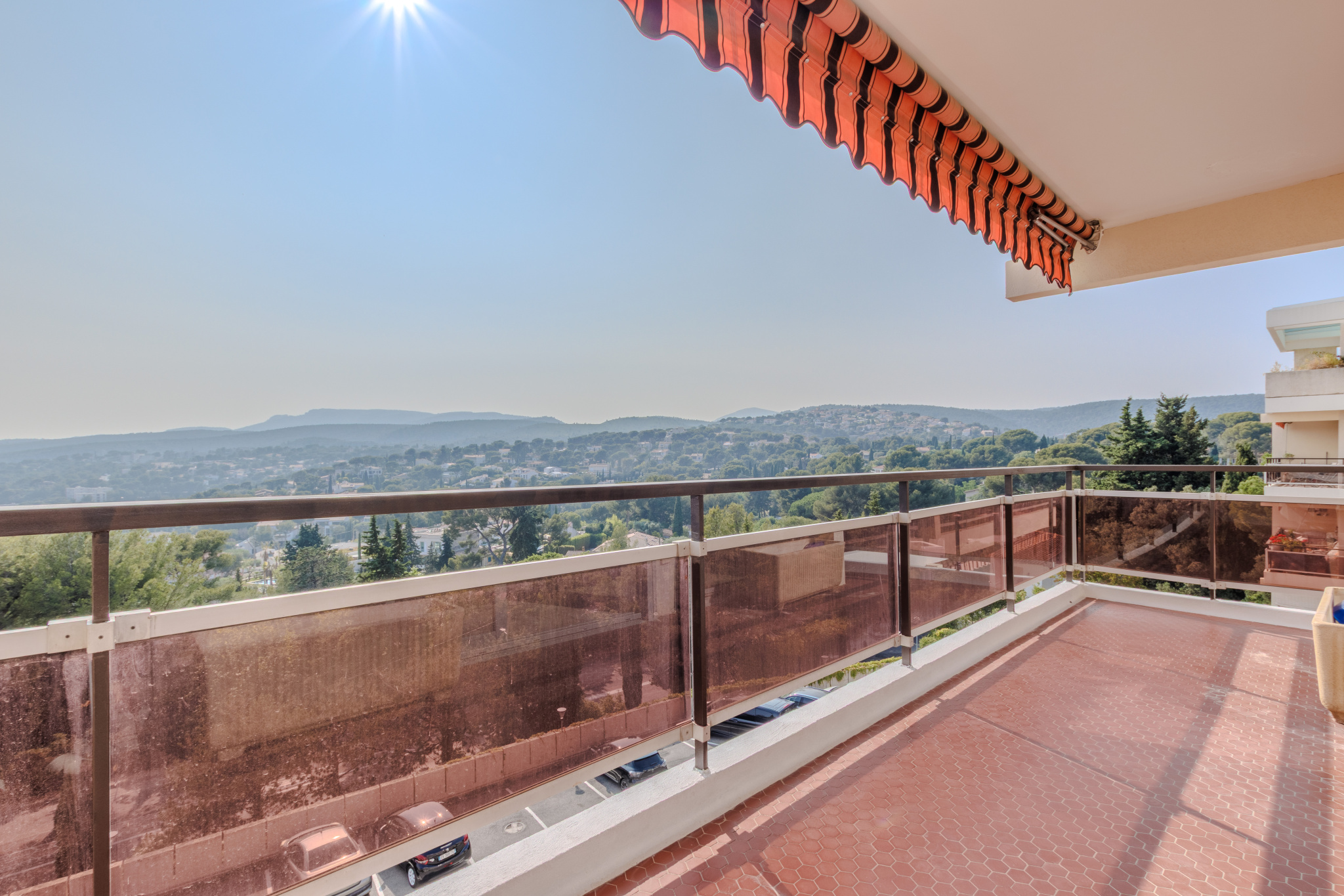L'appartement se compose d'un hall d'entrée , l'espace de vie s'ouvre sur une spacieuse terrasse de 17 m2 veritable prologement du salon ,idéale pour profiter des couchers du soleilsur les falaises du Cap Canaille .