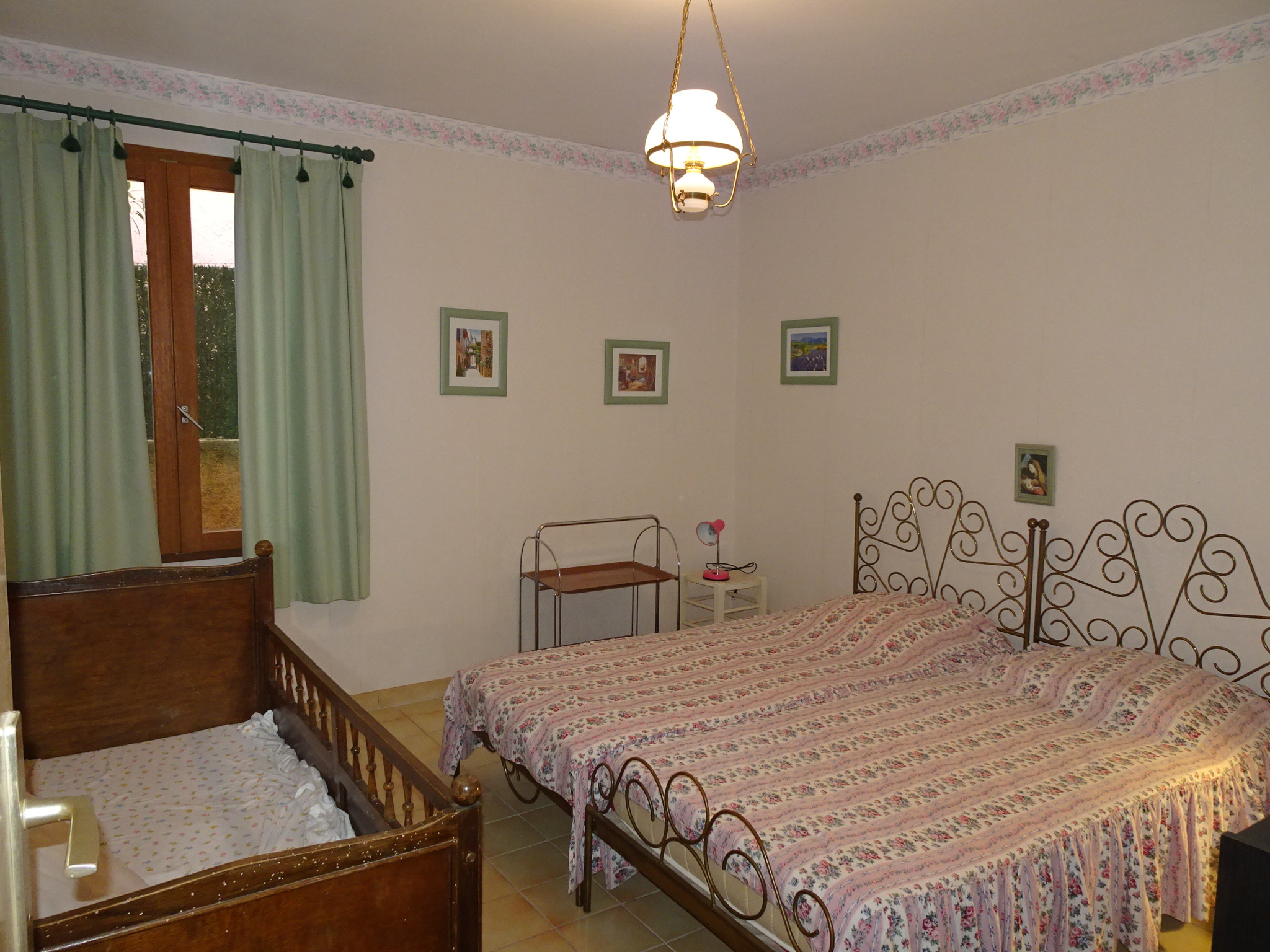 En rez-de-jardin : L'espace nuit comprend quatre grandes chambres, dont trois avec accès direct au jardin, une salle de bains avec fenêtre, et des toilettes indépendantes.