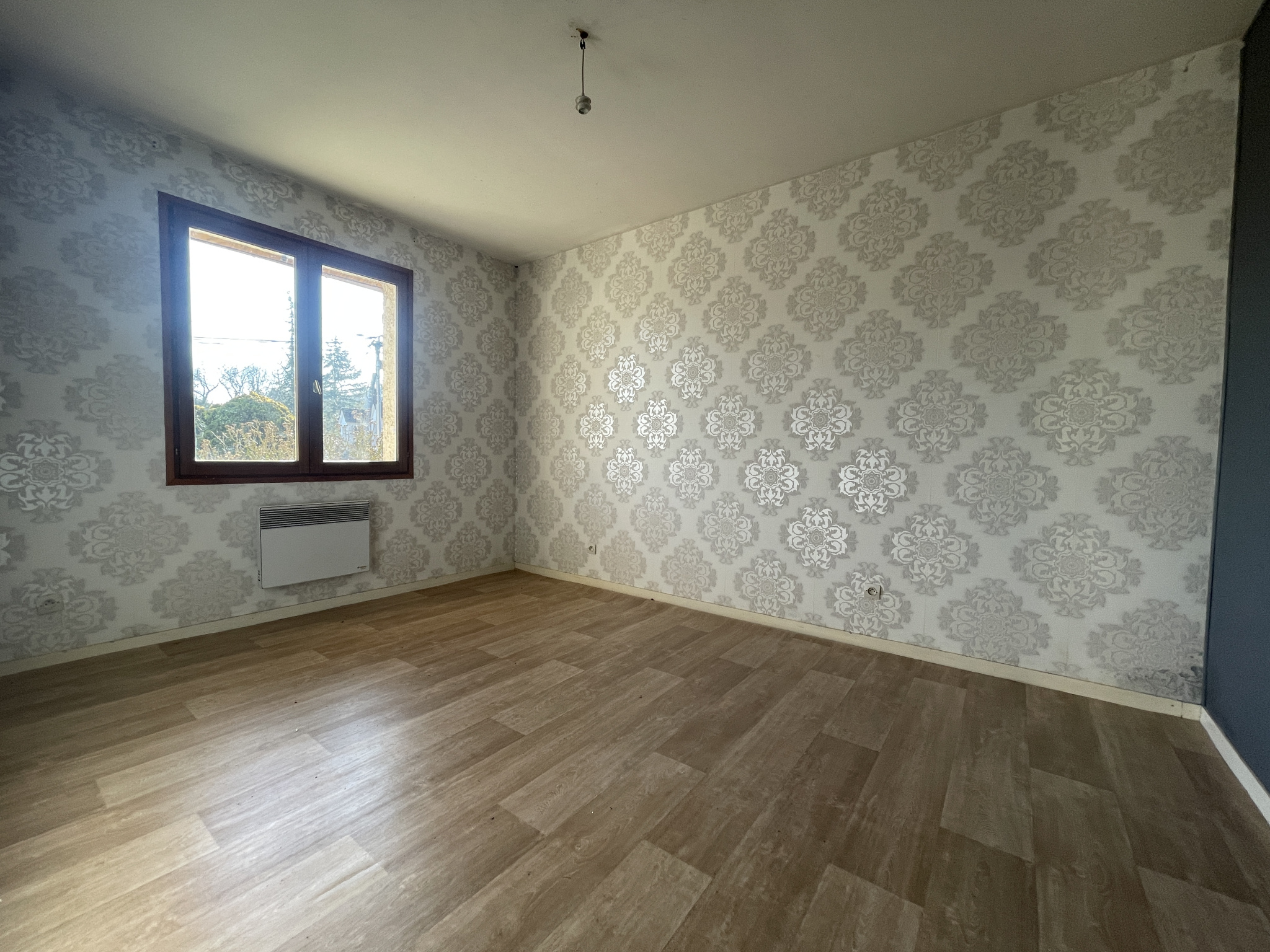 Un salon-séjour avec une cheminée insert, une cuisine, une salle d'eau, un WC indépendant, deux belles chambres non mansardées.