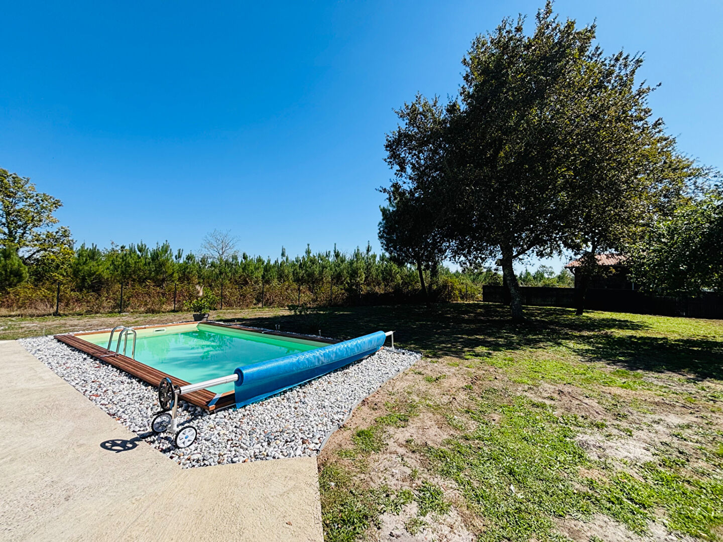 À l'extérieur, profitez d'un jardin arboré de 1748m², clos, sans vis-à-vis en lisière de forêt.