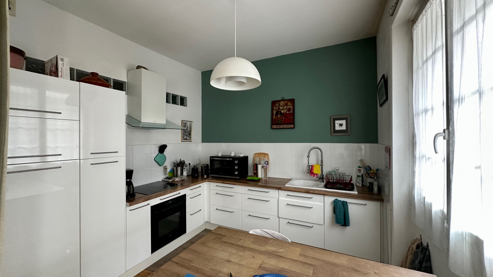 Sa surface habitable de 100m², est complétée, en souplex, par plus de 30m² de pièces annexes, atelier, cave a vins, buanderie, etc.