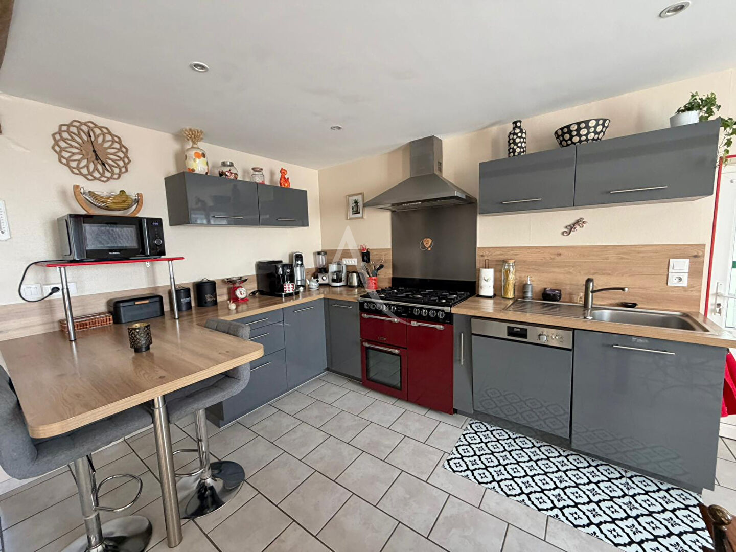 Elle dispose d'une cuisine aménagée et équipée ouverte sur un salon-séjour lumineux, d'une buanderie pratique, d'une salle d'eau contemporaine et de WC séparés. Deux chambres accueillantes offrent un espace nuit confortable, tandis que le grenier reste aménageable selon vos projets.