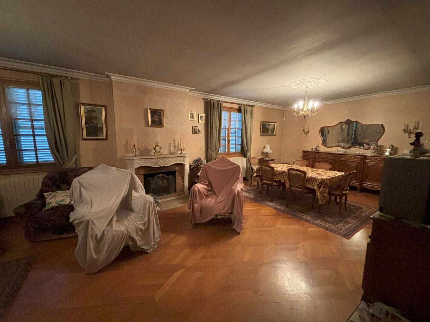 Pavillon trad. sur s/s : Entrée, séjour (cheminée ouvert), cuisine, 3 ch, sdb, WC. S/s : cellier, garage, atelier / chaufferie (CC gaz), buanderie + réserve. Terrain clos de 2560 m² env. Bâtisse annexe : abri voiture, cellier + grenier - puits + bât. attenant (2 pièces + grenier). Gd séjour. S/s total. Quartier calme. Maison annexe à RENOVER.