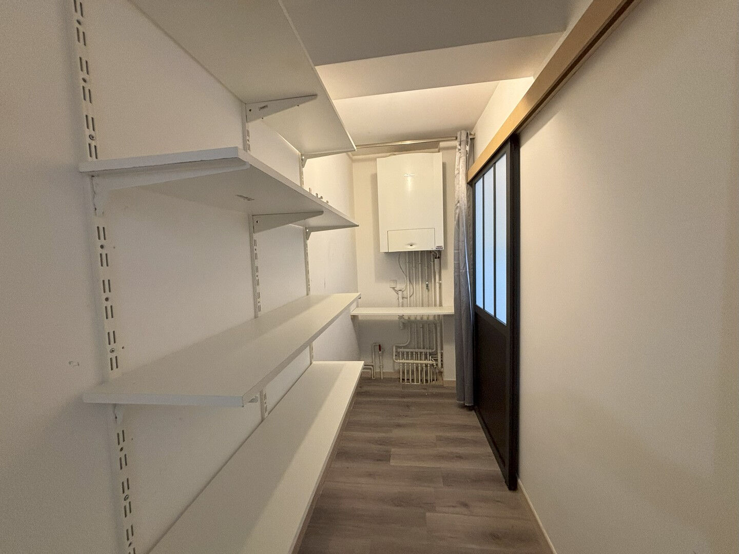 Appartement T4, env. 80 m² hab., situé au 1er étage d'une petite résidence : entrée, grande pièce à vivre, cuisine ouverte sur coin repas, belle terrasse, cellier aménagé, WC, salle de bains, 3 chambres (ou 2 chambres et un bureau). Chauffage ind. gaz. Cave. Emplacement de parking aérien. Résidence calme. Appartement moderne en très bon état. Sans travaux. Nombreux aménagements.