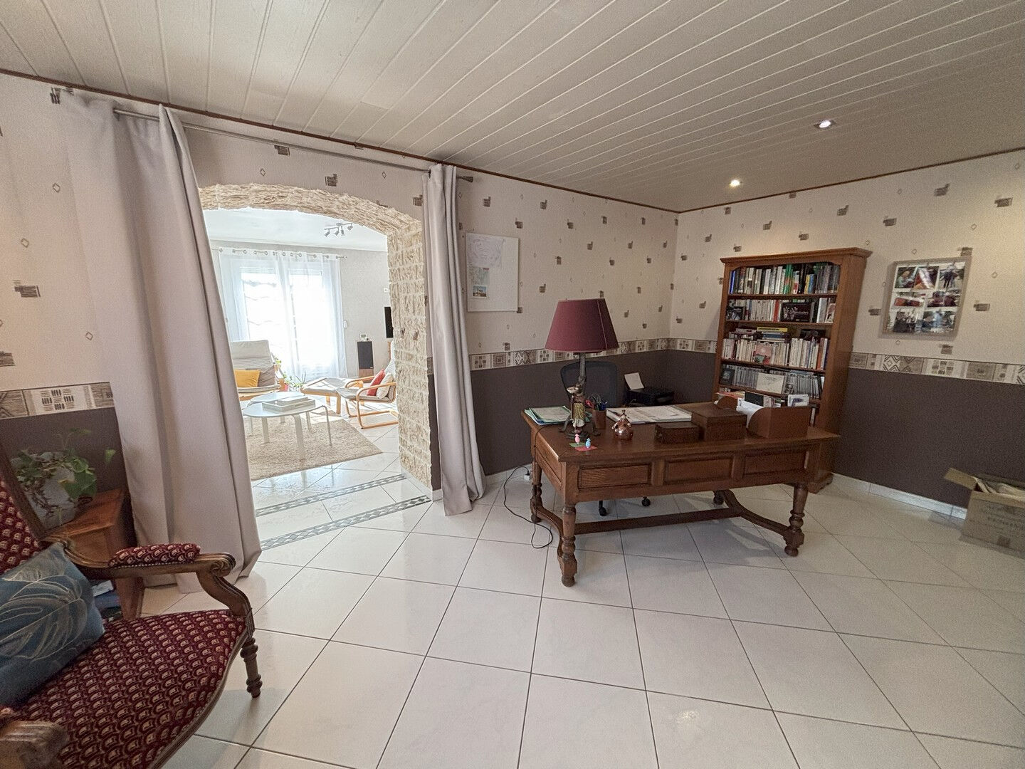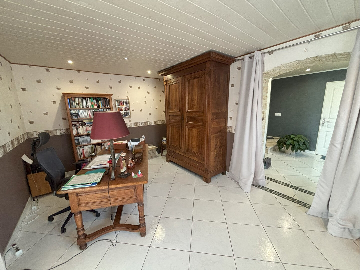 Maison ancienne rénovée, sur 2 niveaux : gd séjour (terrasse), bureau, cuisine aménagée semi-ouverte, 2 salles d'eau, 2 WC, 4 chambres. Grenier. PAC + poêle à granules. Terrain clos et arboré de 1139 m² env. Puits. Abri de jardin. Au calme. Campagne. Sans vis-à-vis. Bonne isolation. Assainissement récent. Hab. imm. en l'état. Aspiration centralisée. Travaux de toiture à prévoir, à terme.