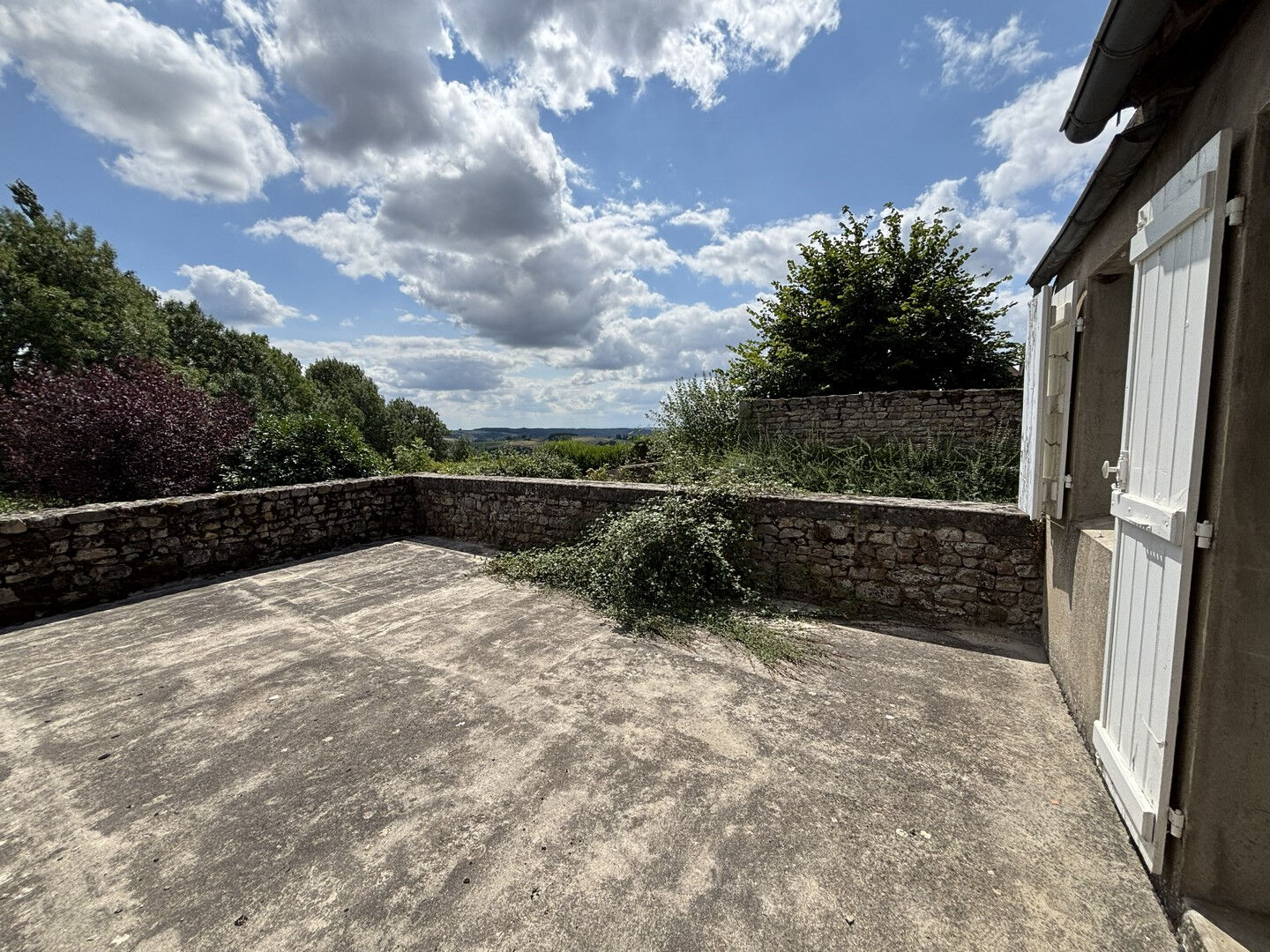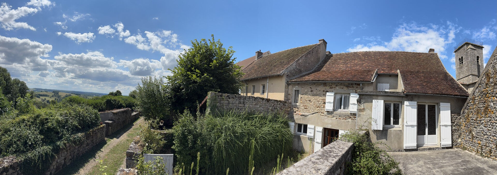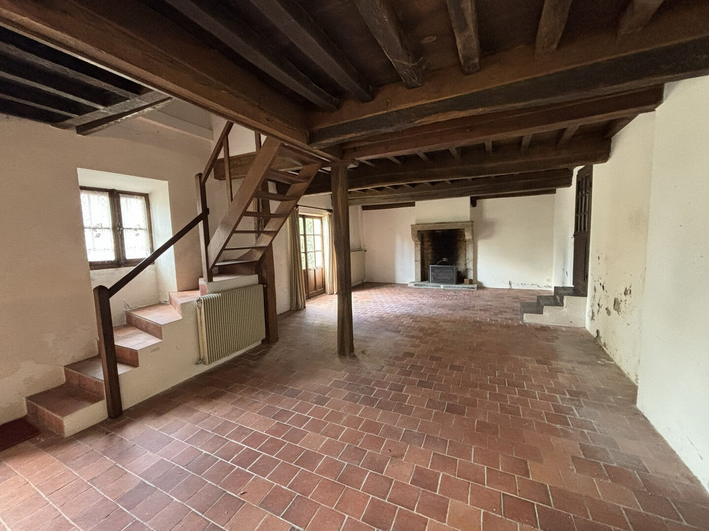 Maison de village attenant sur 2 niveaux : gd pièce de séjour (cheminée ouvert), cuisine, bureau, 3 chambres, 2 salles d'eau, 3 WC. Terrasse avec vue. CC fuel. Cave. Grand garage / grange attenant. Cour avant et arrière (avec remise). Terrain détaché. Maison de caractère. Coeur du bourg (classé). Bon potentiel. Travaux à prévoir.