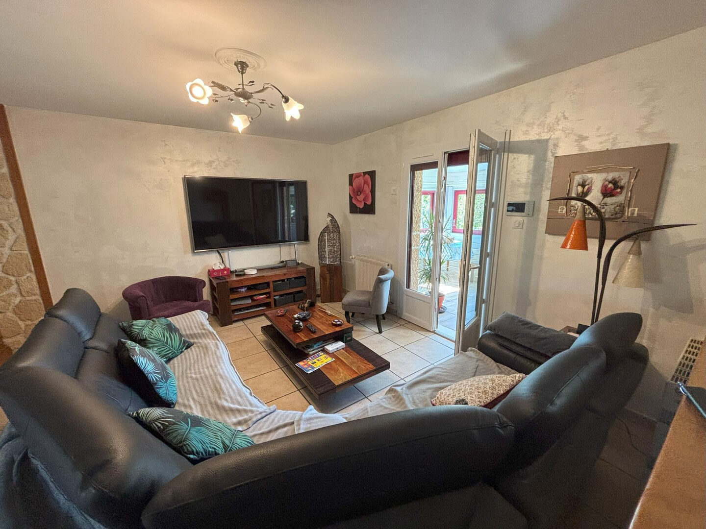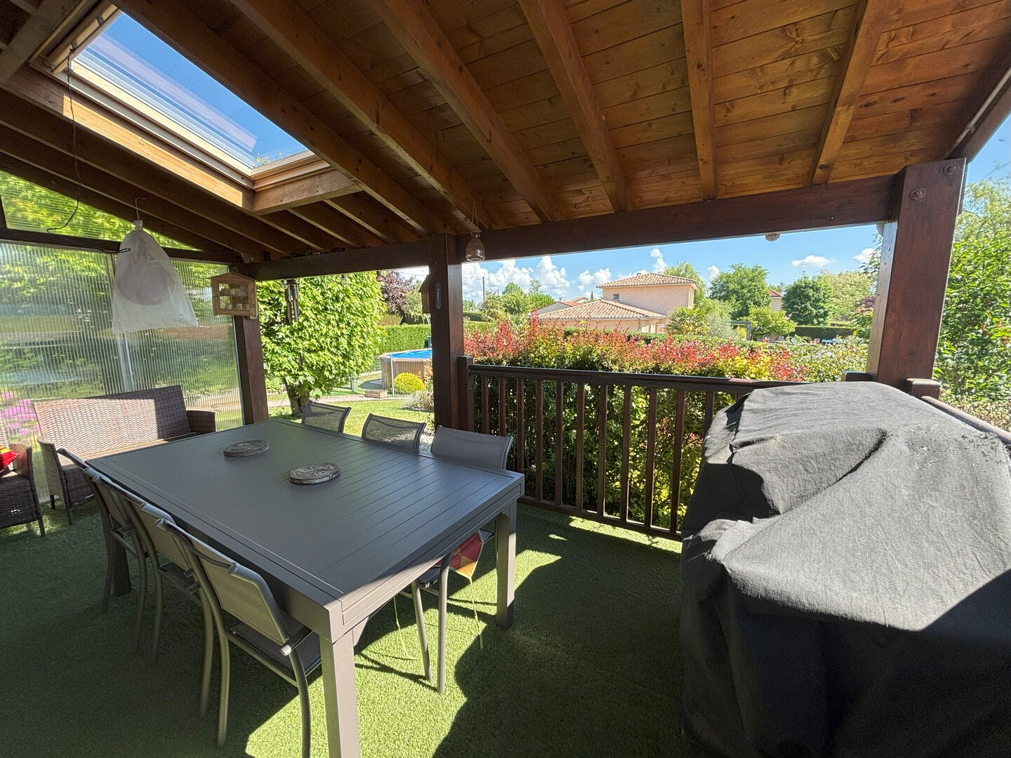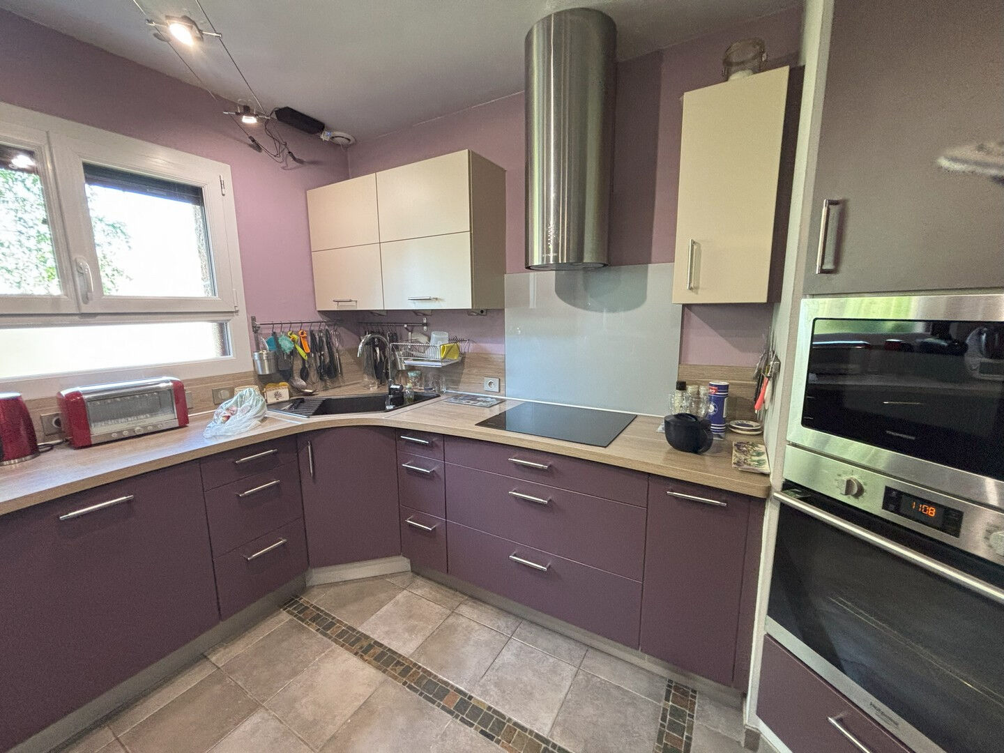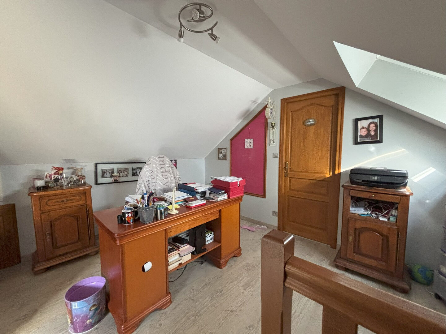 Pavillon élevé sur s/s + combles aménagés : Véranda / entrée, cuisine aménagée et équip. , séjour (climatisé) - terrasse abritée, 6 chambres, 2 salles d'eau, 2 WC, mezzanine / bureau, cellier, buanderie / chaufferie (CC gaz). Carport attenant. Abri bois. Piscine hors sol. Terrain clos de 870 m² env. arboré et paysagé. Très entretenu. Hab. sans travaux. Gd séjour. Quartier calme.