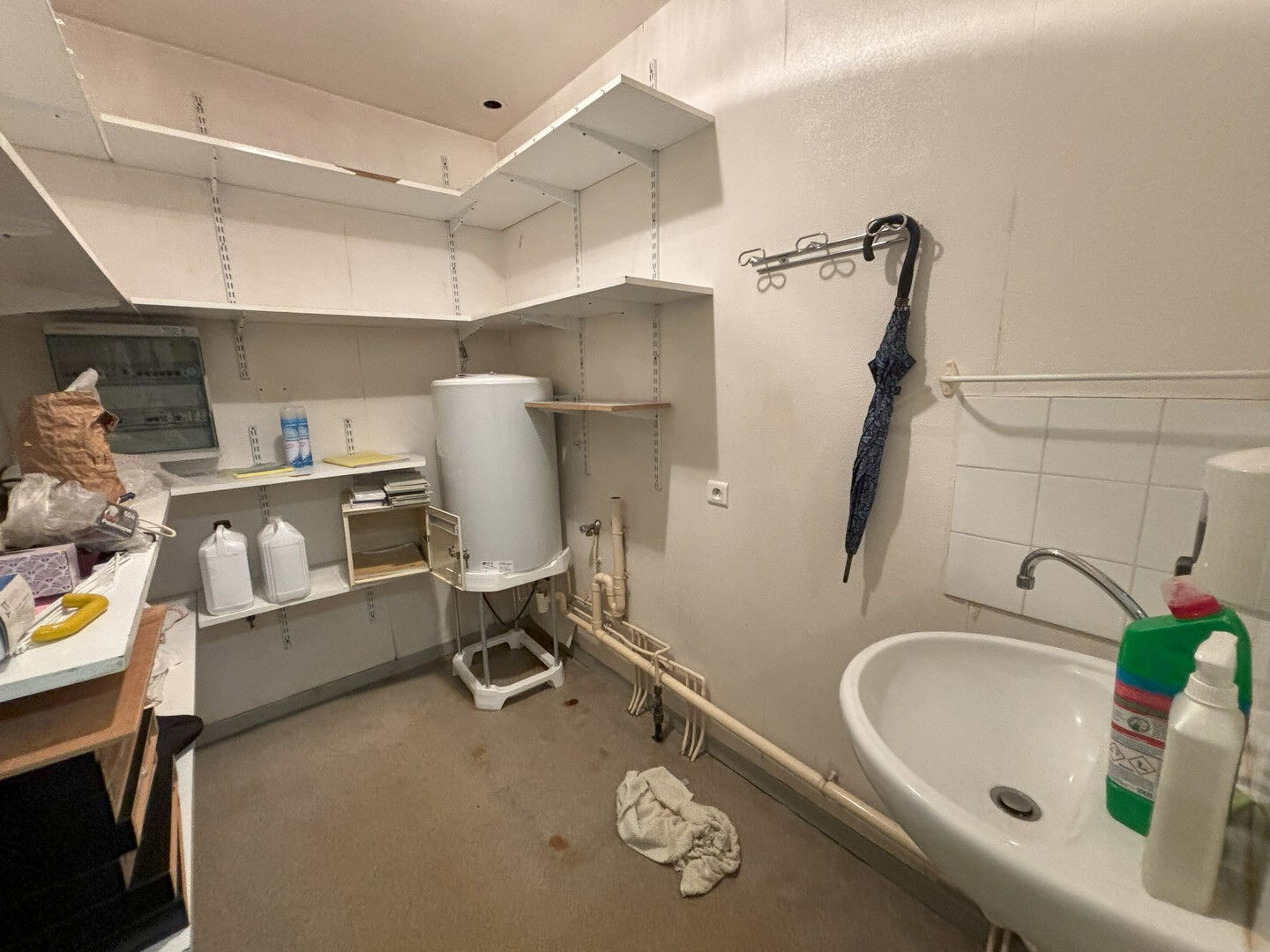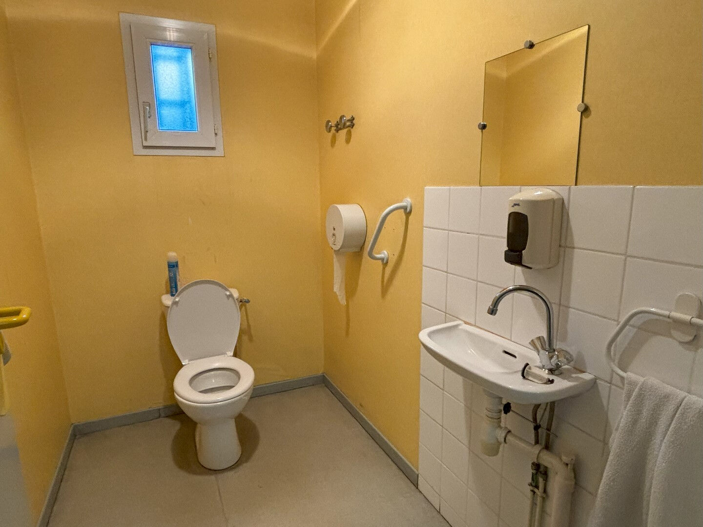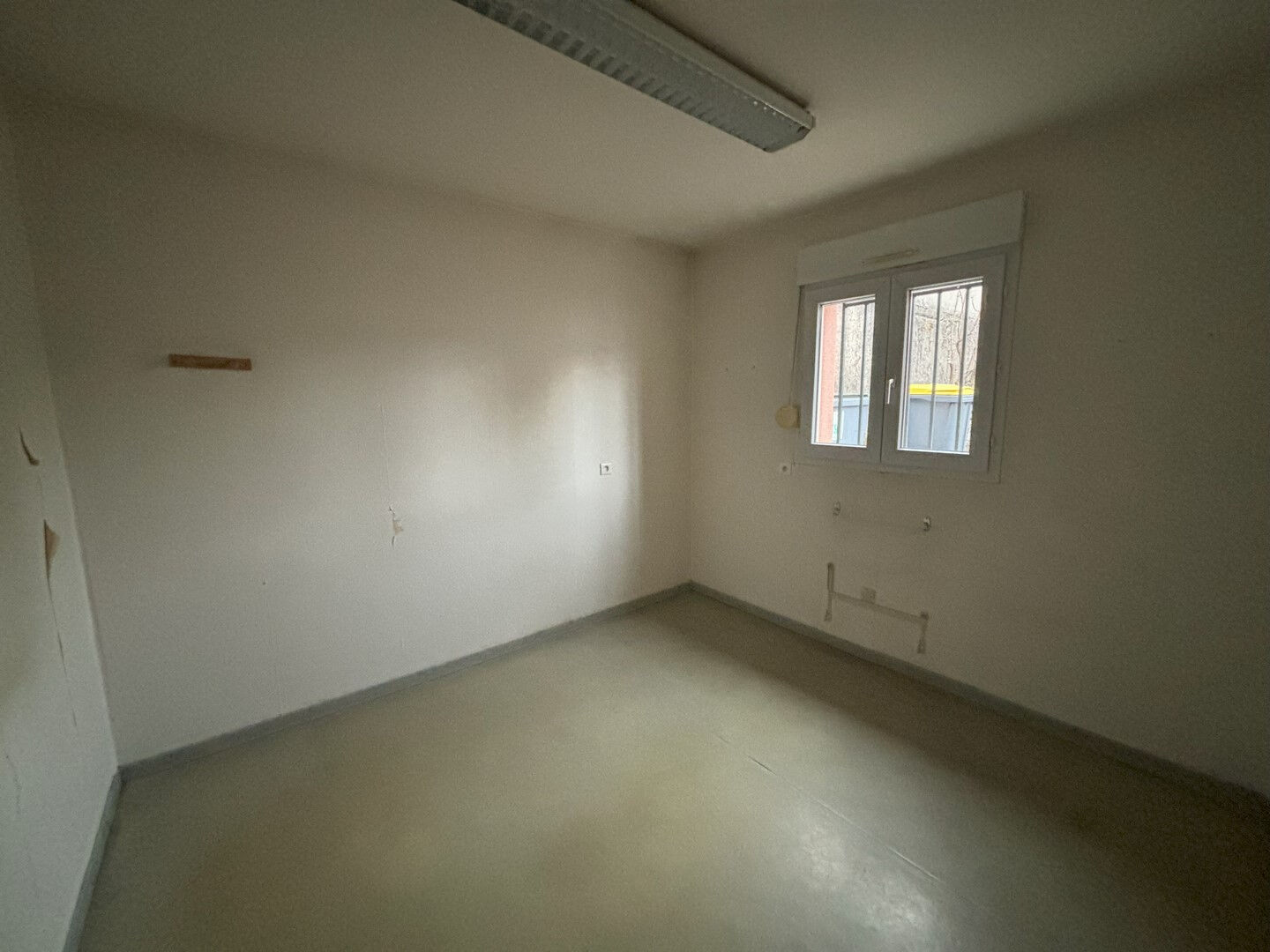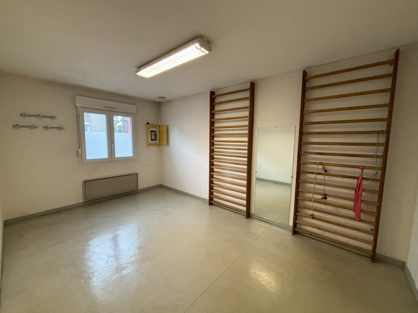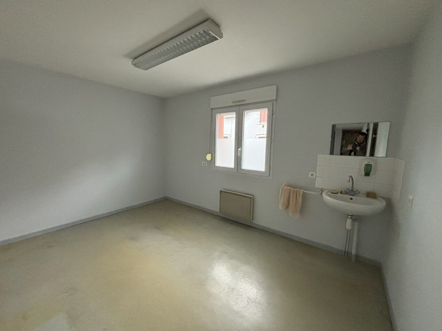 Locaux professionnels (1994) : accueil, espace ouvert - salle de soins, 6 bureaux (dont 2 avec lavabo), salle d'attente, local technique + lavabo, réserve, 1 pièce, sanitaire + lavabo. Chauffage élec. Cour, non fermée, aménagée (enrobée) à usage de parking. Bon potentiel. Idéal prof. libérale. Parking aménagé. Bon oeuvre en bon état.