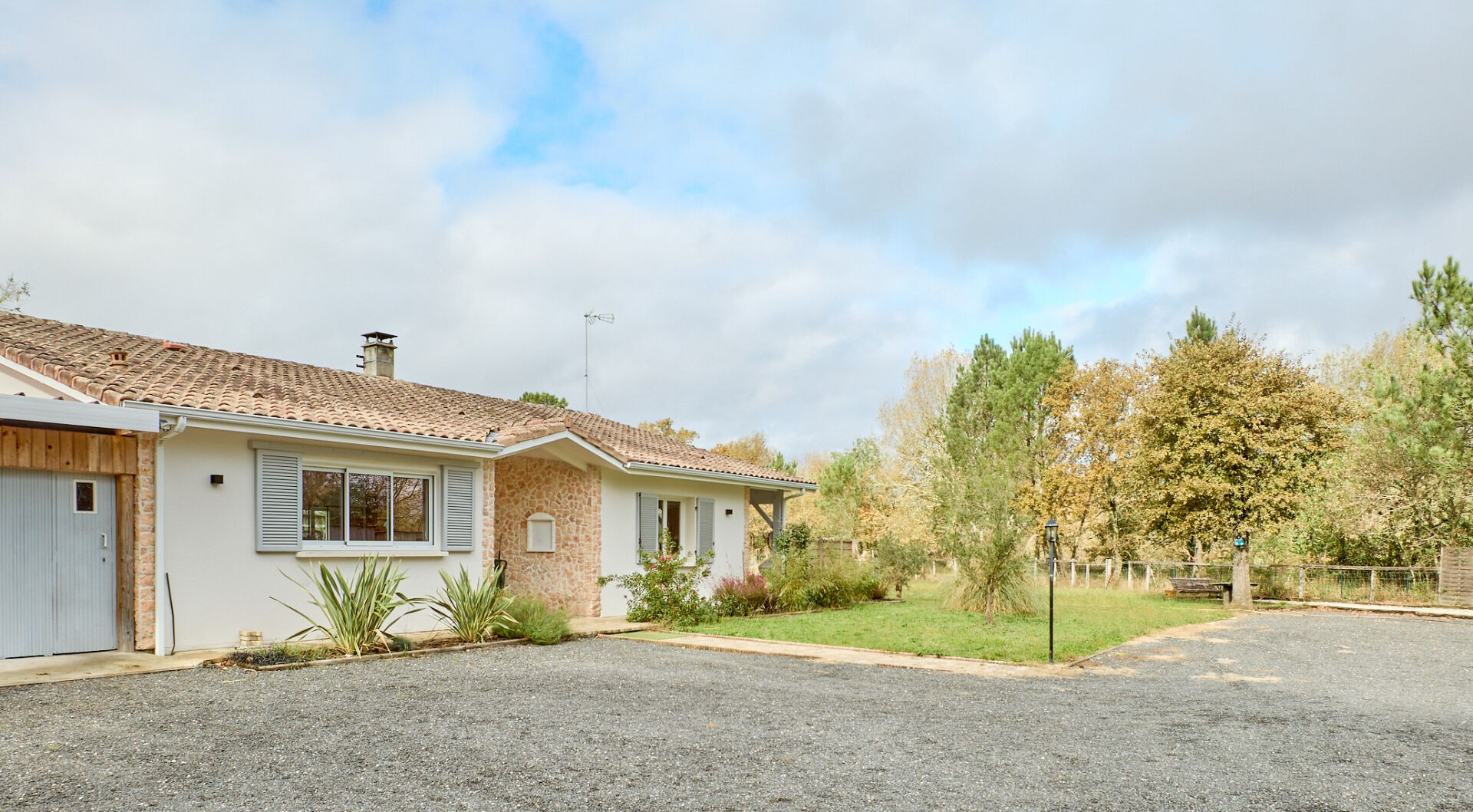 Côté jardin, profitez d'une grande terrasse couverte, un terrain de pétanque et rangements extérieurs, le tout sur un terrain de plus de 3 000 m² en lisière de forêt.