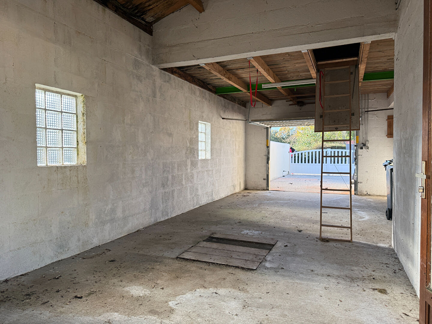 Grand Garage et possibilité de stationner un camping car sur l'avant de la maison.