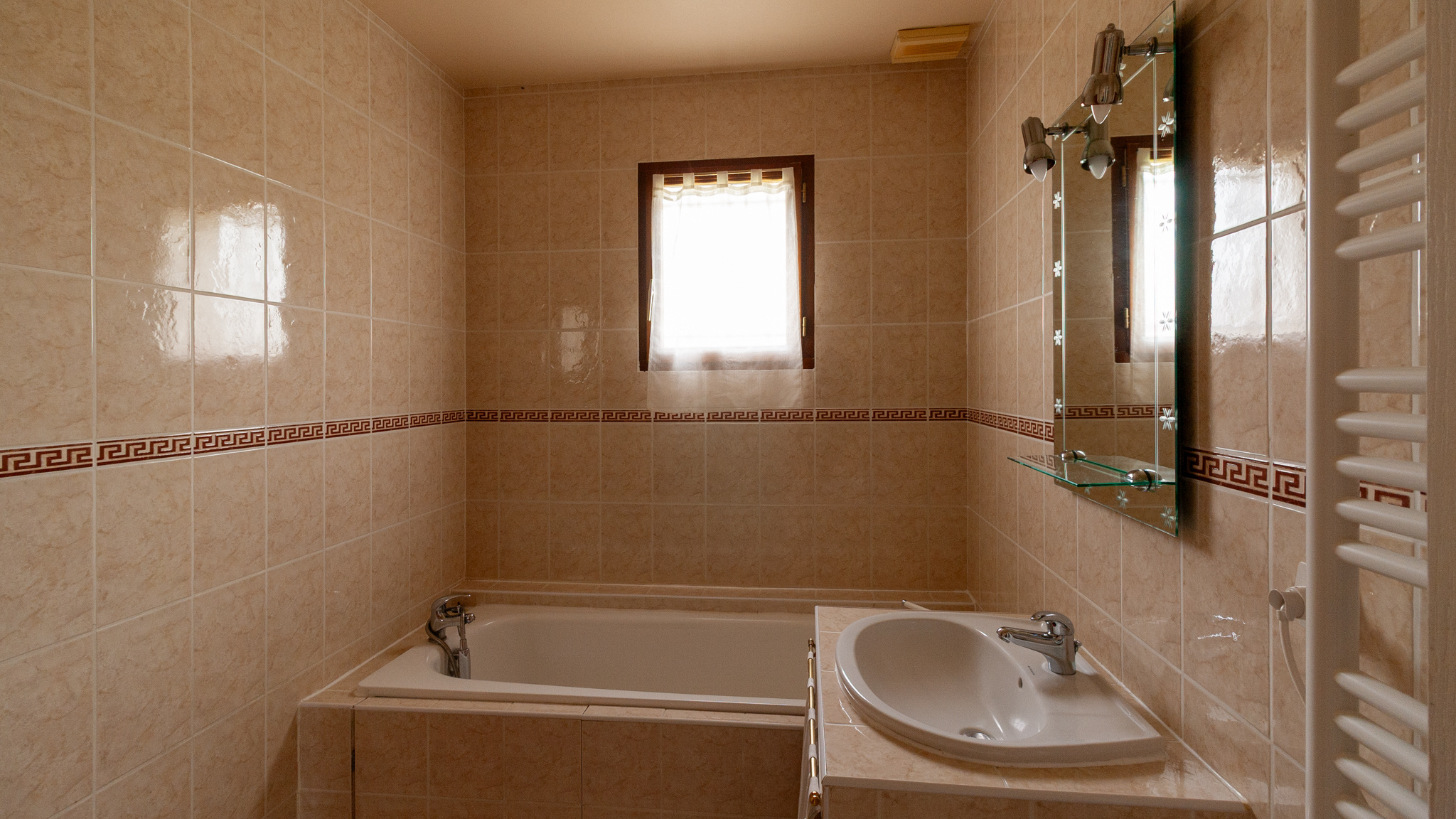 Le garage entièrement carrelé abrite un adoucisseur d'eau protégeant toutes les intallations sanitaires..