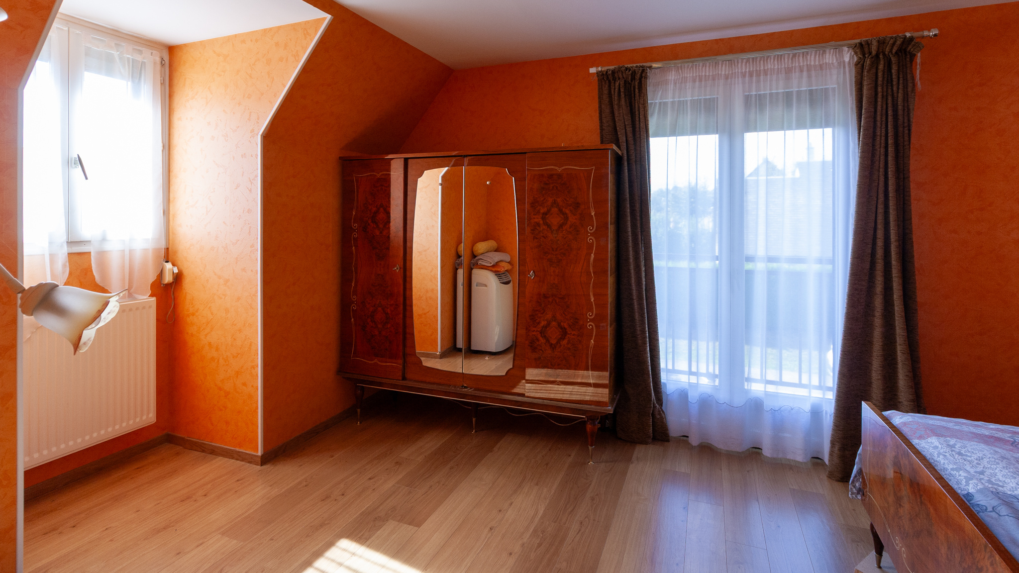 En empruntant l'escalier, le dégagement vous donnera accès une grande chambre profitant de 2 ouvertures, à la salle de bains éauipée d'un wc, au dressing ainsi qu'aux 2 dernières chambres.