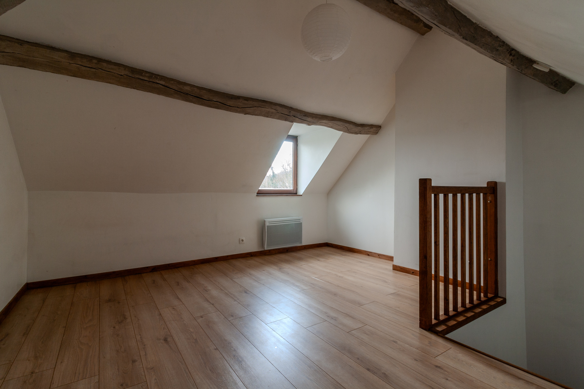 En empruntant l'escalier, vous découvrirez un palier desservant 2 belles chambres et vous permmetant de rejoindre la 3ème chambre sous combles.