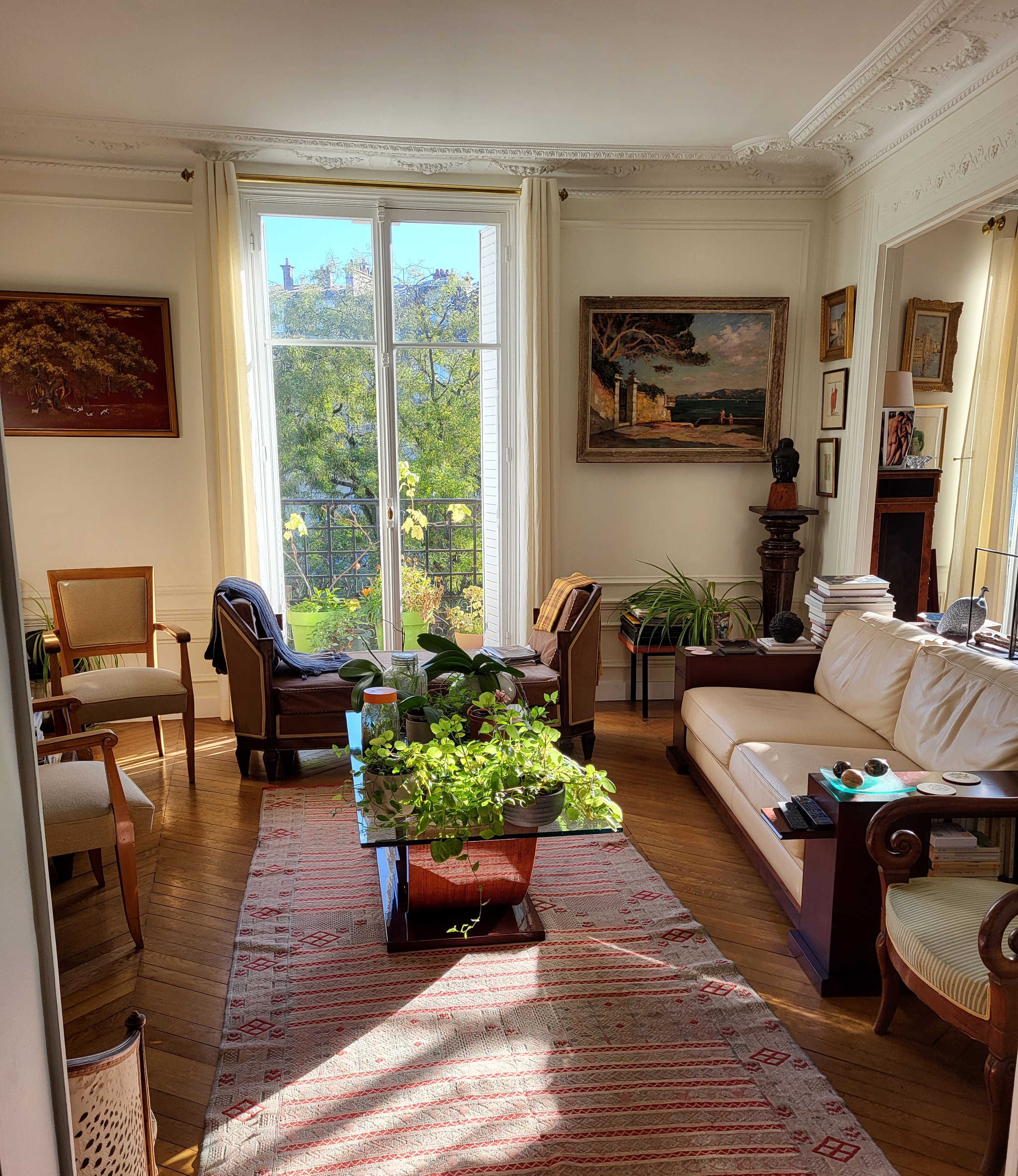 D'une surface carrez de 104 m² , il est situé en étage élevé et bénéficie d'une vue dominante sur le parc et d'un calme absolu. Il est traversant Est-Ouest avec une belle luminosité, sans vis à vis.
