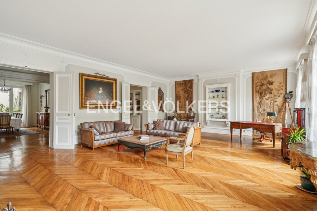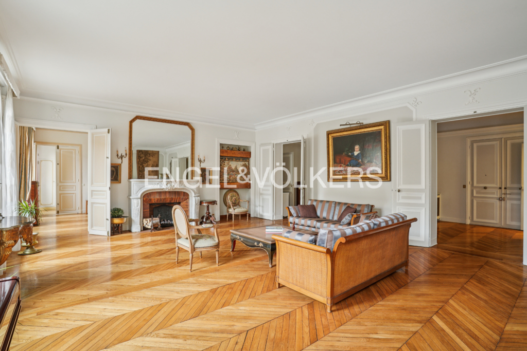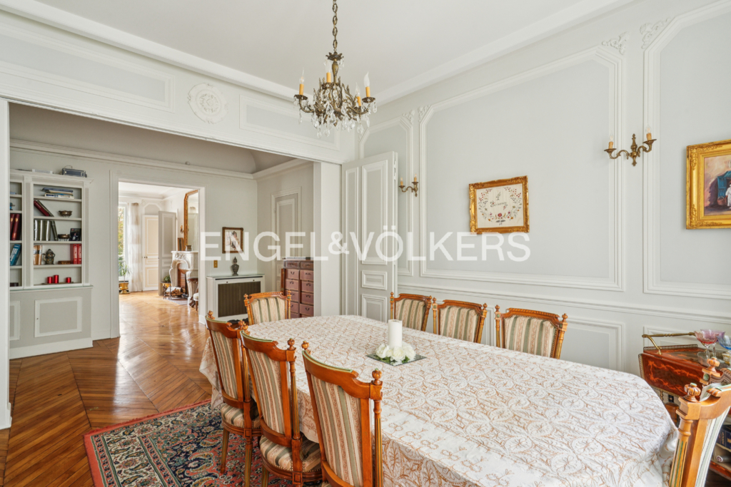 Engel & Völkers vous propose à la vente un appartement familial et de réception de 218 m² au sol (212,99 m² carrez), situé au 1er étage d'un immeuble haussmannien récemment ravalé avec ascenseur et gardien. L'appartement ayant conservé tout le charme de l'ancien, bénéficie d'une hauteur sous plafond de 3,20 m.