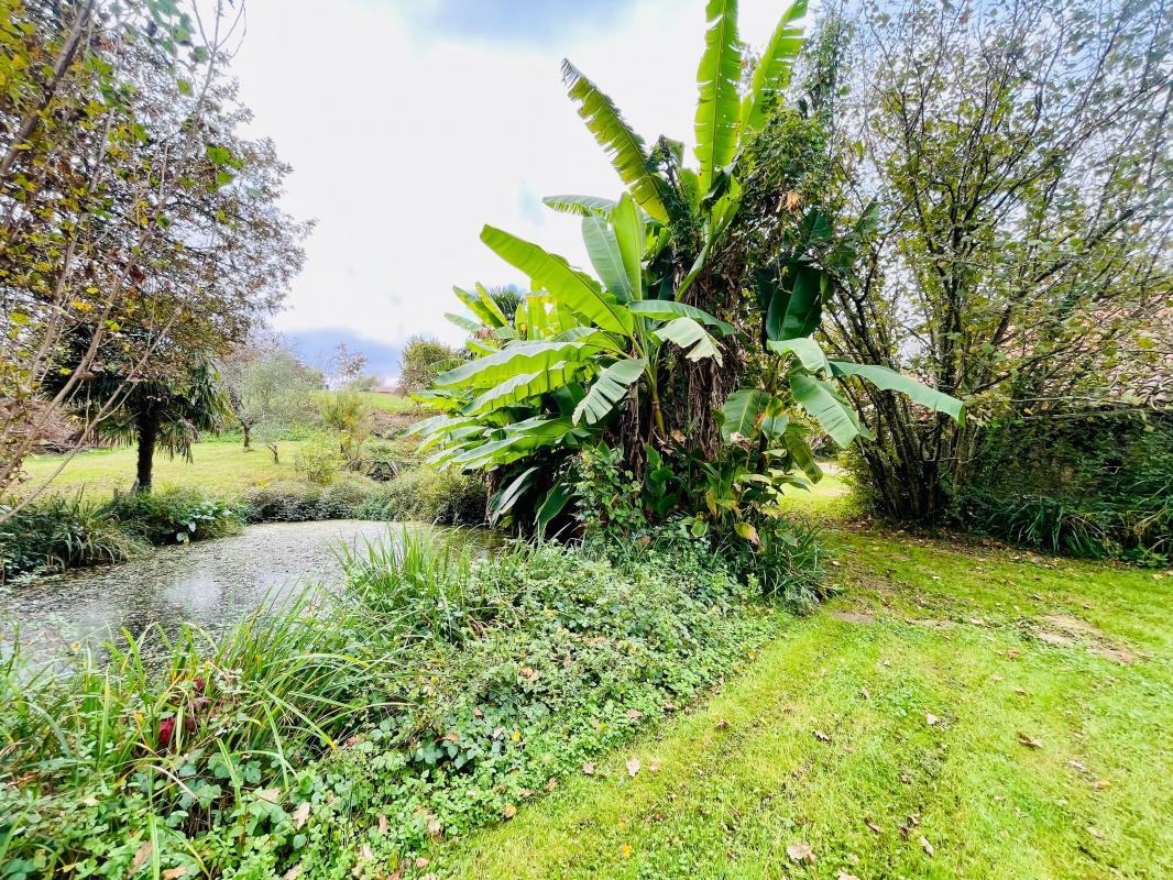 La pièce d'eau privative, alimentée par une source naturelle, apporte une atmosphère apaisante -- un véritable écrin de nature où le jardin, la végétation et l'eau composent un tableau vivant.