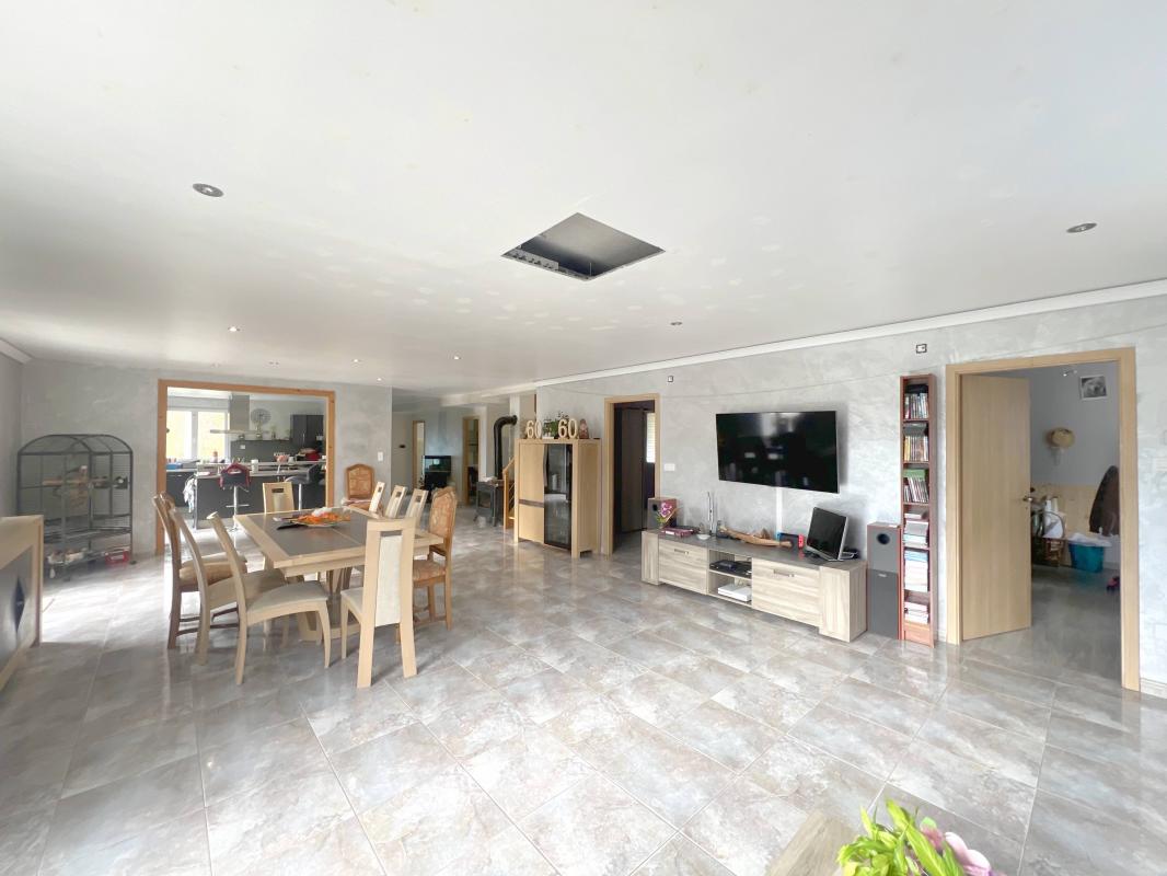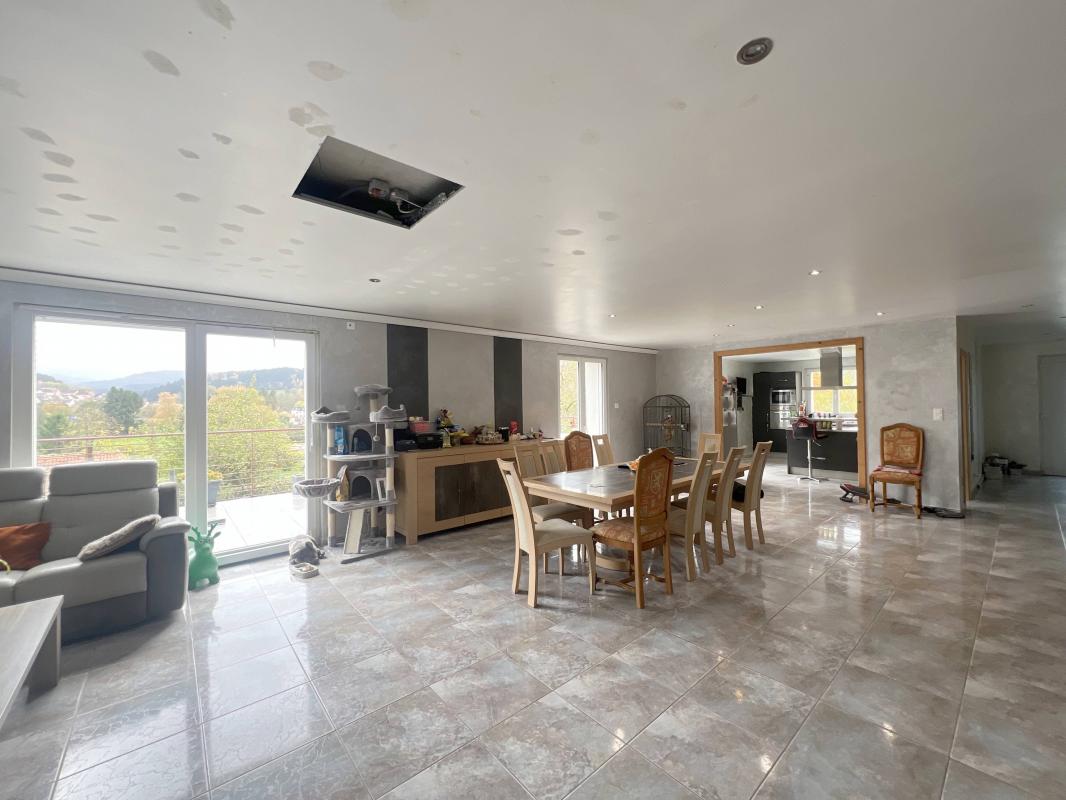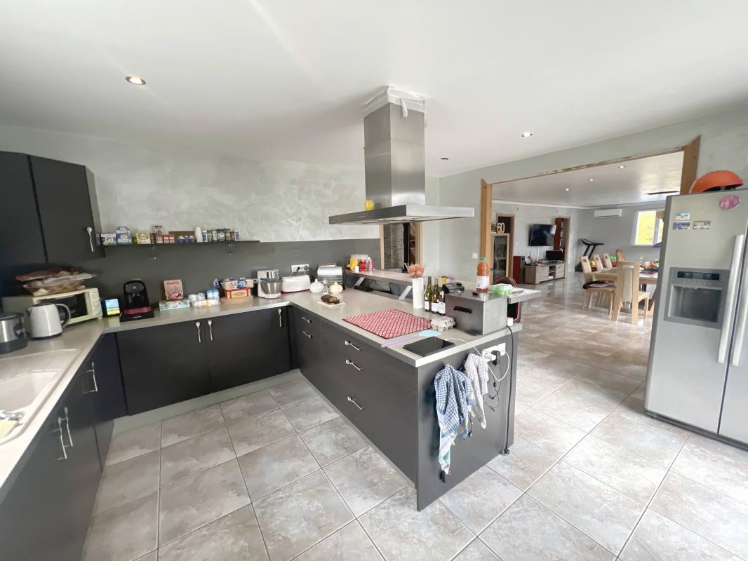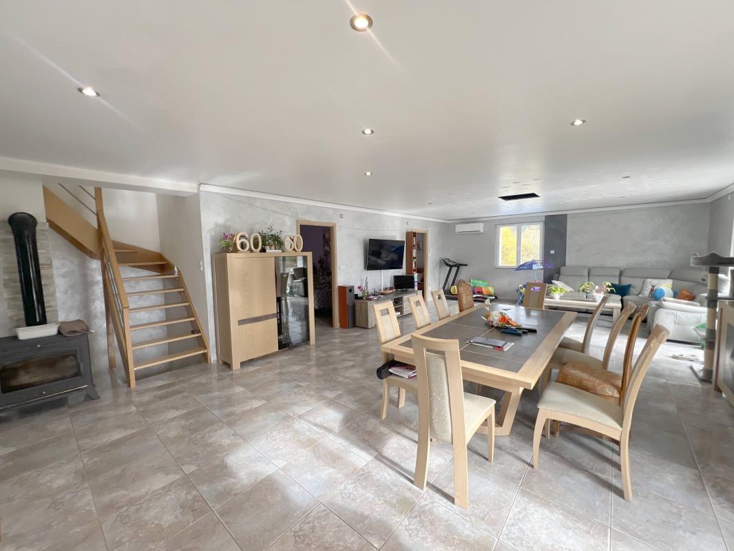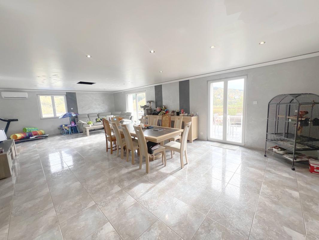 Venez découvrir cette maison individuelle de 2011 disposant d'un excellent classement énergétique (DPE en A) et d'un fort potentiel. En situation dominante, sa superficie habitable est de 242 m² environ, sur une parcelle de terrain de 19 ares. Habitable de plain-pied, elle comprend, au niveau principal, une entrée, un très grand espace de vie lumineux ouvert sur une belle cuisine équipée et donnant accès à une terrasse spacieuse disposant d'une superbe vue, deux chambres, une salle de bains avec baignoire et douche, une pièce dressing et un WC indépendant. A l'étage, un grand palier faisant office de second salon, deux chambres, un bureau et une salle d'eau avec WC. Sous-sol complet avec double garage (portes automatiques), espace buanderie/WC et chaufferie. En complément de la terrasse accueillante, parfaite pour les repas d'été, la propriété dispose également d'une piscine creusée (chauffée par pompe à chaleur) et d'un garage indépendant. Chauffage au sol par pompe à chaleur au rez-de-chaussée et poêle à bois, et par radiateurs électriques à l'étage. Fenêtres à triple vitrage au rez-de-chaussée et à double vitrage à l'étage. Volets électriques. Isolation extérieure. Panneaux photovoltaïques avec revente permettant le paiement de l'électricité à l'année.