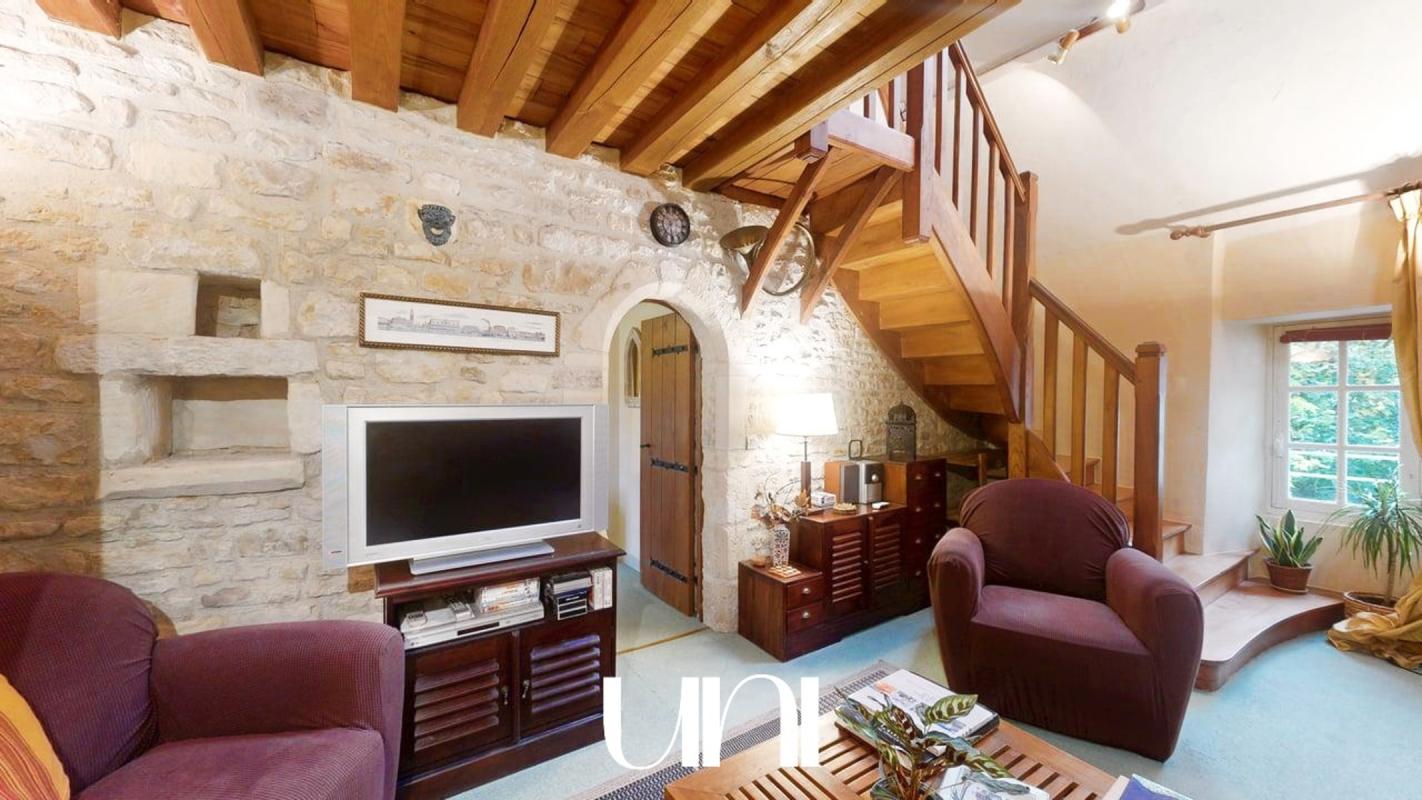 Une seconde entrée indépendante donne accès à un superbe escalier en pierre de Caen qui dessert le deuxième logements (à usage de gite actuellement) et qui peut rejoindre le grand salon de la maison familliale.