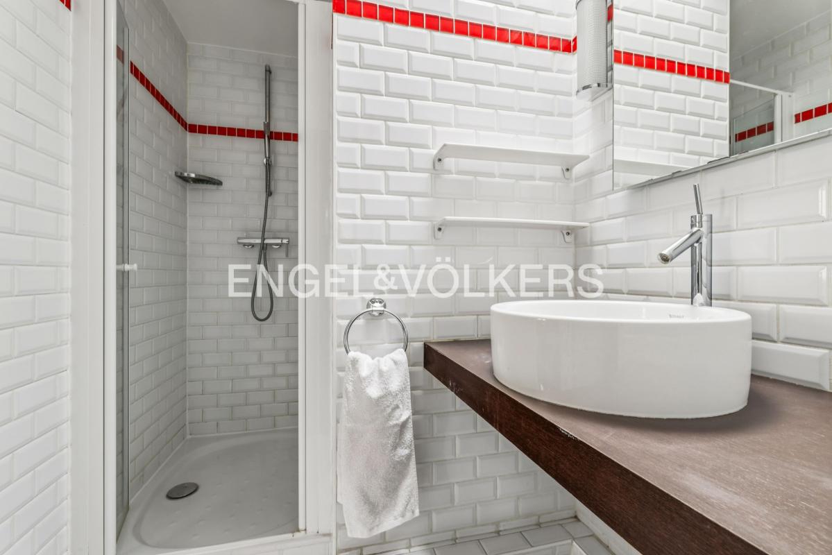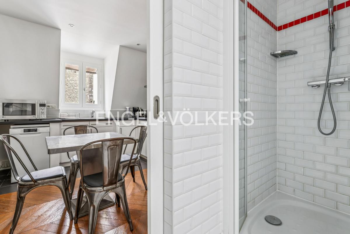 Idéalement situé au dernier étage par escalier d'un immeuble post haussmannien avec gardien et aux parties communes soignées, un studio (possiblement 2 pièces) de 44.17m² loi Carrez (48.90m² au sol) donnant sur une vue dégagée et sans vis-à-vis orienté Sud-Ouest.