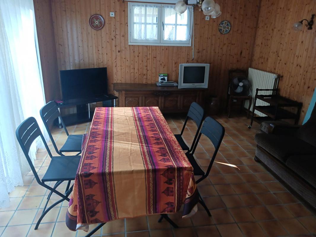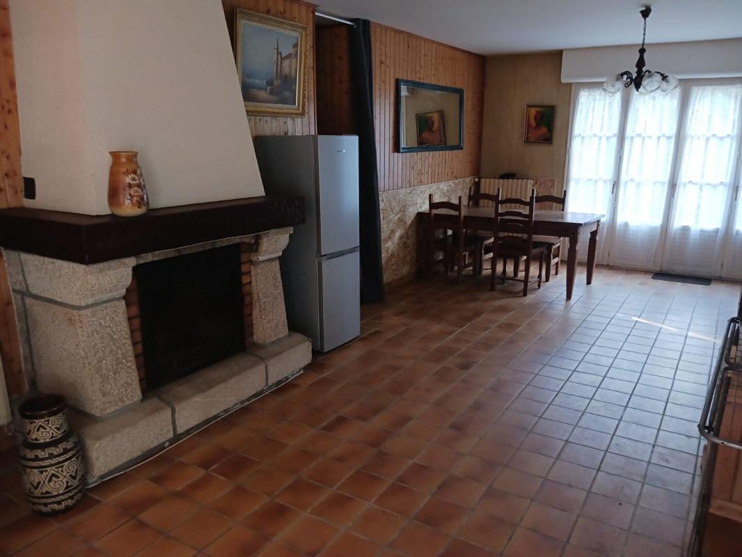 Rez-de-chaussée : Un hall d'entrée ouvrant sur une cuisine équipée et un salon-séjour chaleureux avec poêle à bois, une buanderie et un WC indépendant.