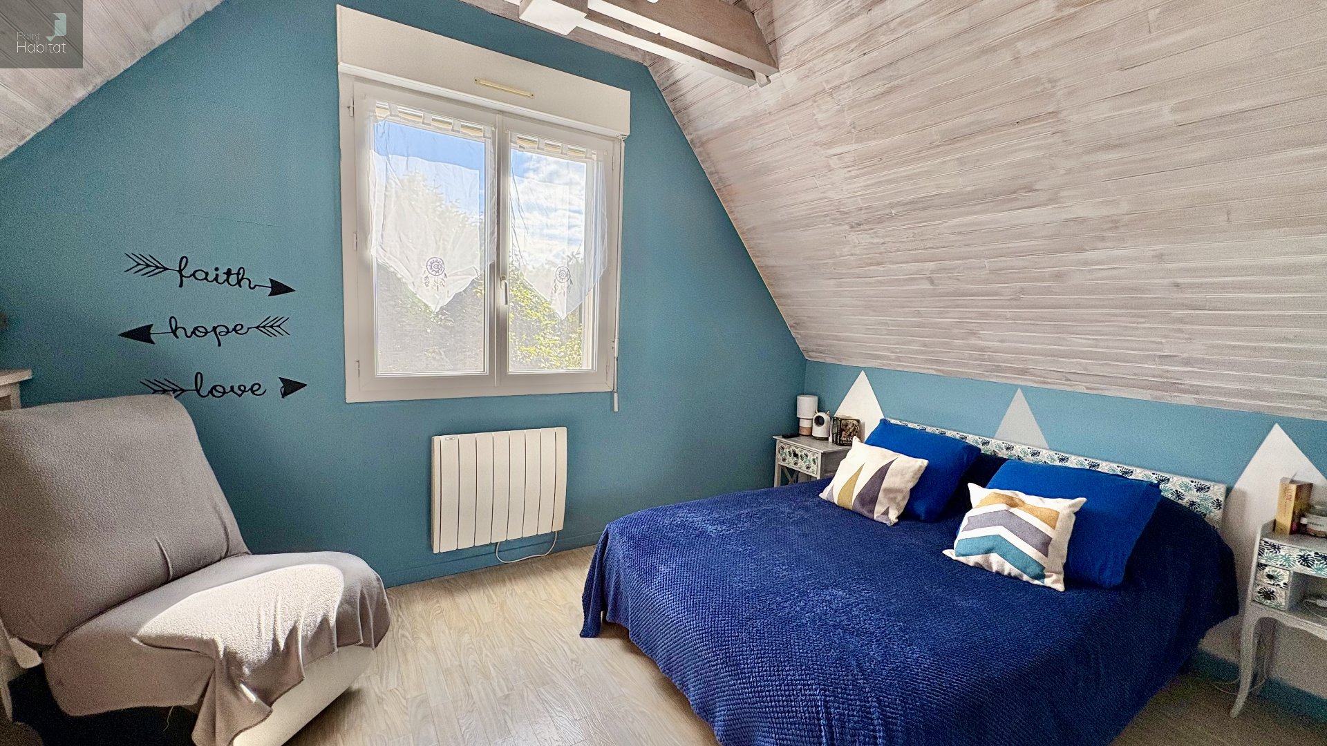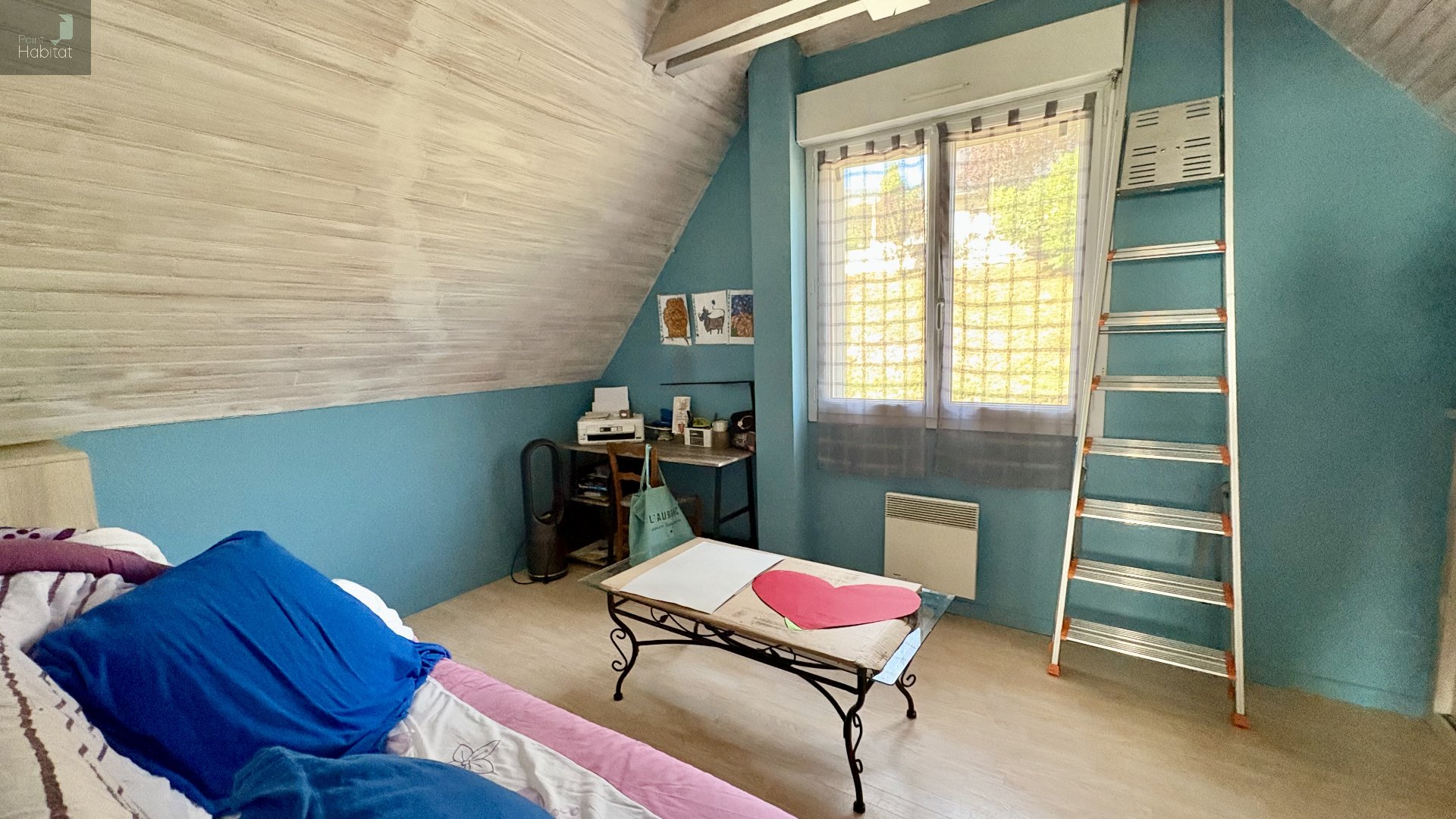 Le deuxième étage propose deux chambres et une salle de bain, wc.