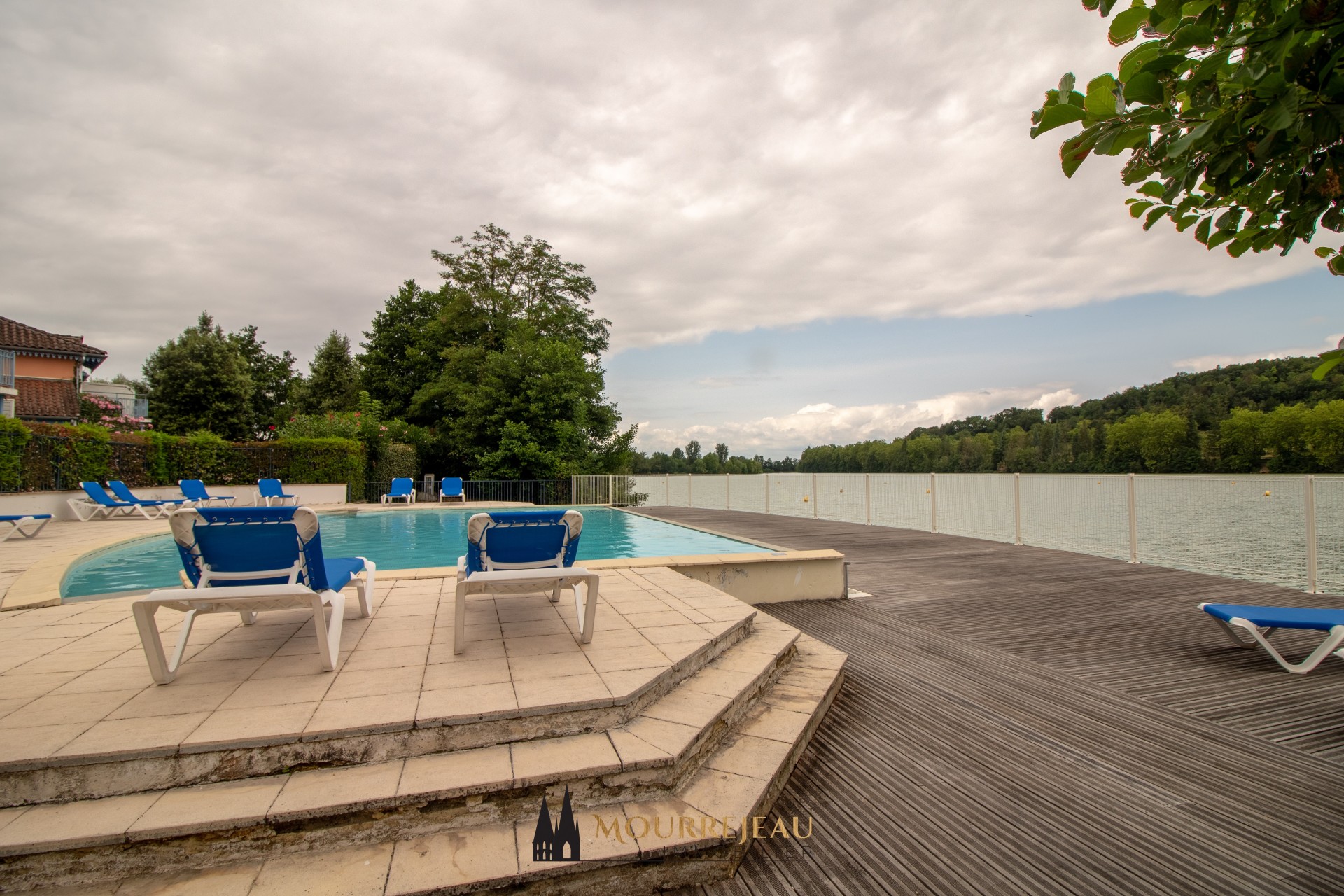 Le tout ouvert sur une terrasse vue sur la piscine et le lac. Appartement entièrement aux normes PMR, fonctionnel, confortable, propre et très bien entretenu.
