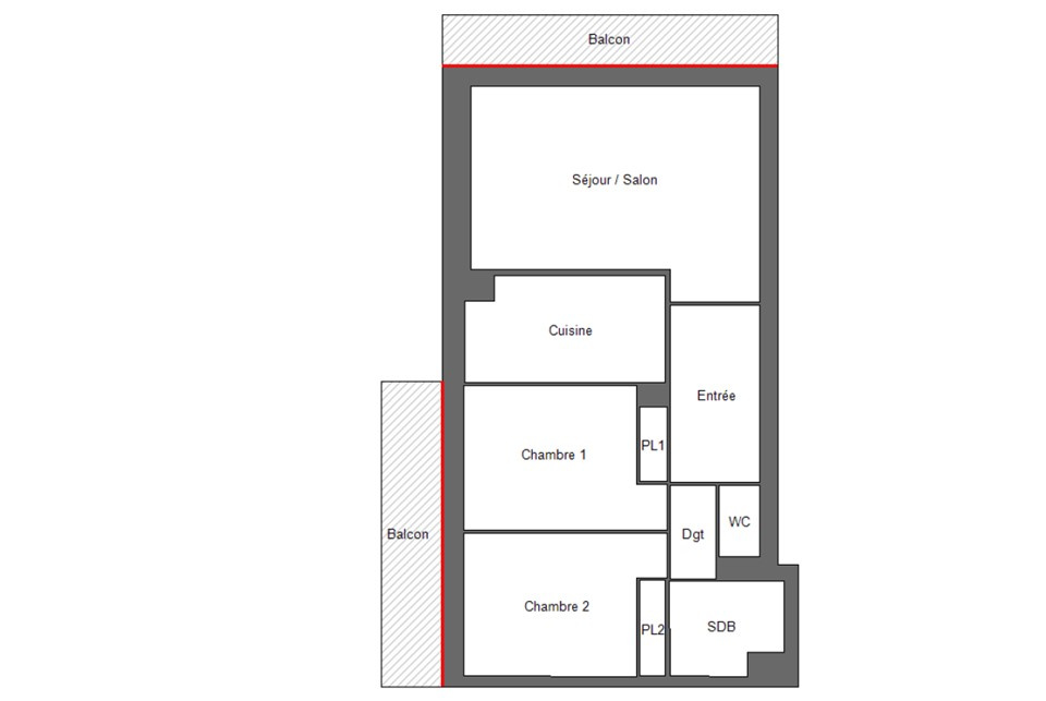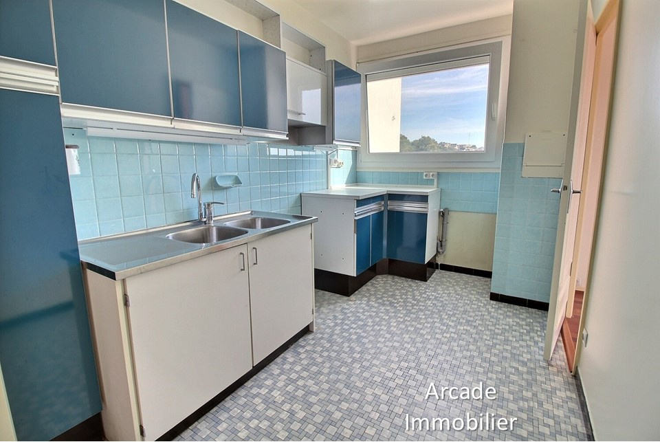 Appartement de type F3 avec vue panoramique sur la ville et l'estuaire, 2 grands balcons et ascenseur et comprenant : entrée, séjour-salon sud, cuisine, 2 chambres, salle de bains, wc, dégagement, rangements.