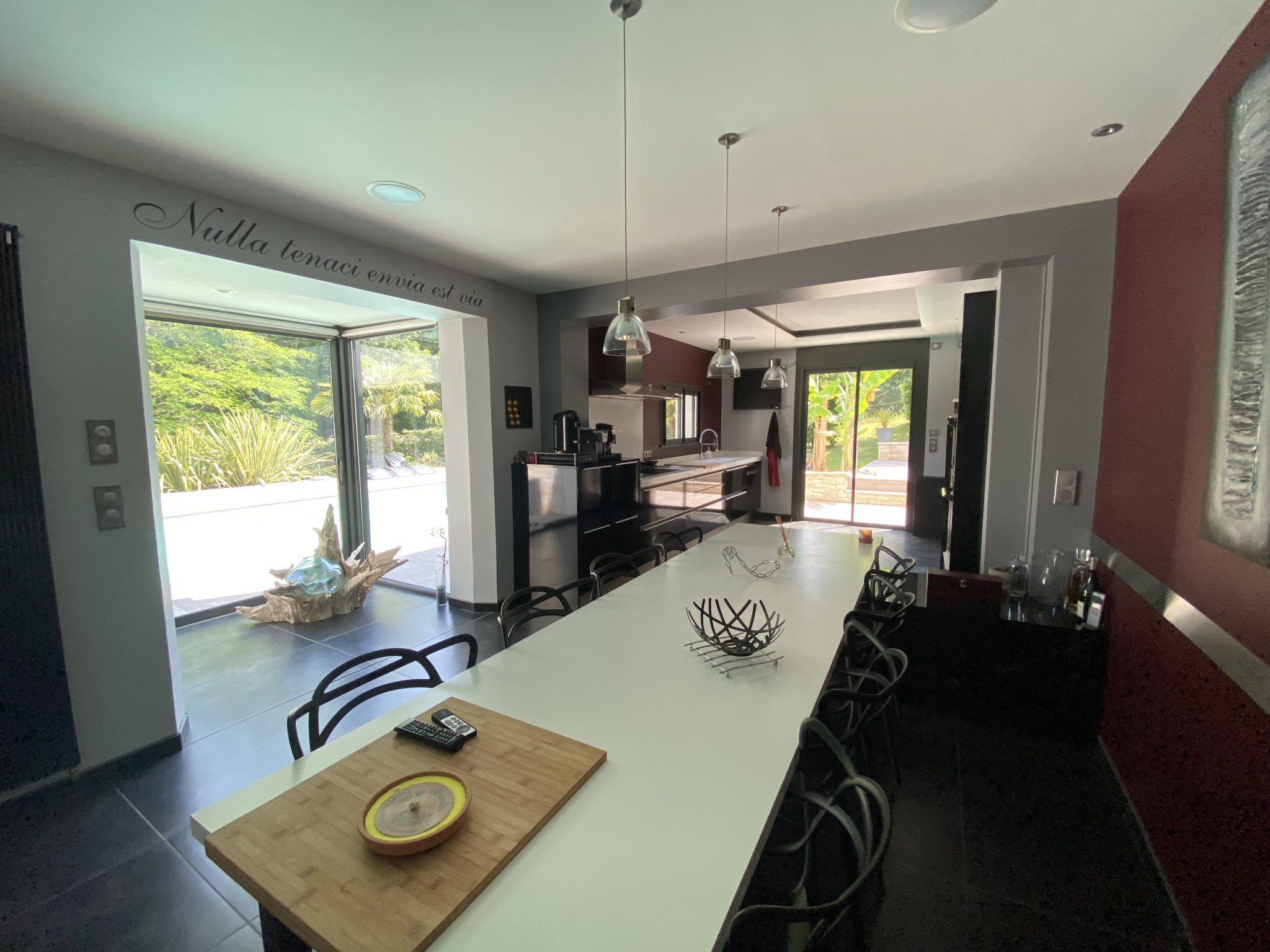 Cette spatieuse maison de 279m2 construite en 1981 et entièrement rénovée avec goût a été édifiée sur une parcelle de 3 481 m2 au coeur de la nature.