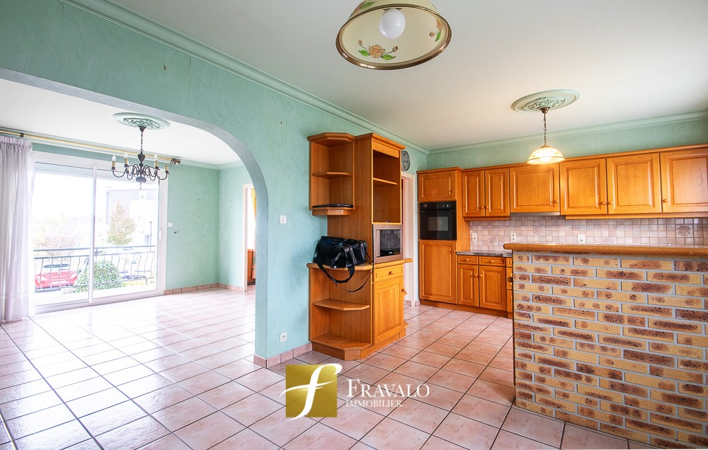 A 300 m de la place du centre de Grand-Champ, venez découvrir cette maison de type nantaise offrant de beaux volumes et de belles possibilités d'aménagement. Vous trouverez au rez-de-chaussée surélevé: une entrée ouverte sur le salon-séjour avec cheminée insert et cuisine aménagée-équipée, deux chambres, une salle d'eau et un wc. L'étage se compose de deux chambres, de trois greniers pouvant être aménagés en bureau ou dressing, d'une salle d'eau et d'un wc. Sous-sol complet avec garage, chaufferie, buanderie et cave. Estimation des coûts annuels d'énergie pour un usage standard du logement: entre 2590 EUR et 3560 EUR (abonnement compris). Les informations sur les risques auxquels ce bien est exposé sont disponibles sur le site Géorisques : georisques.gouv.fr