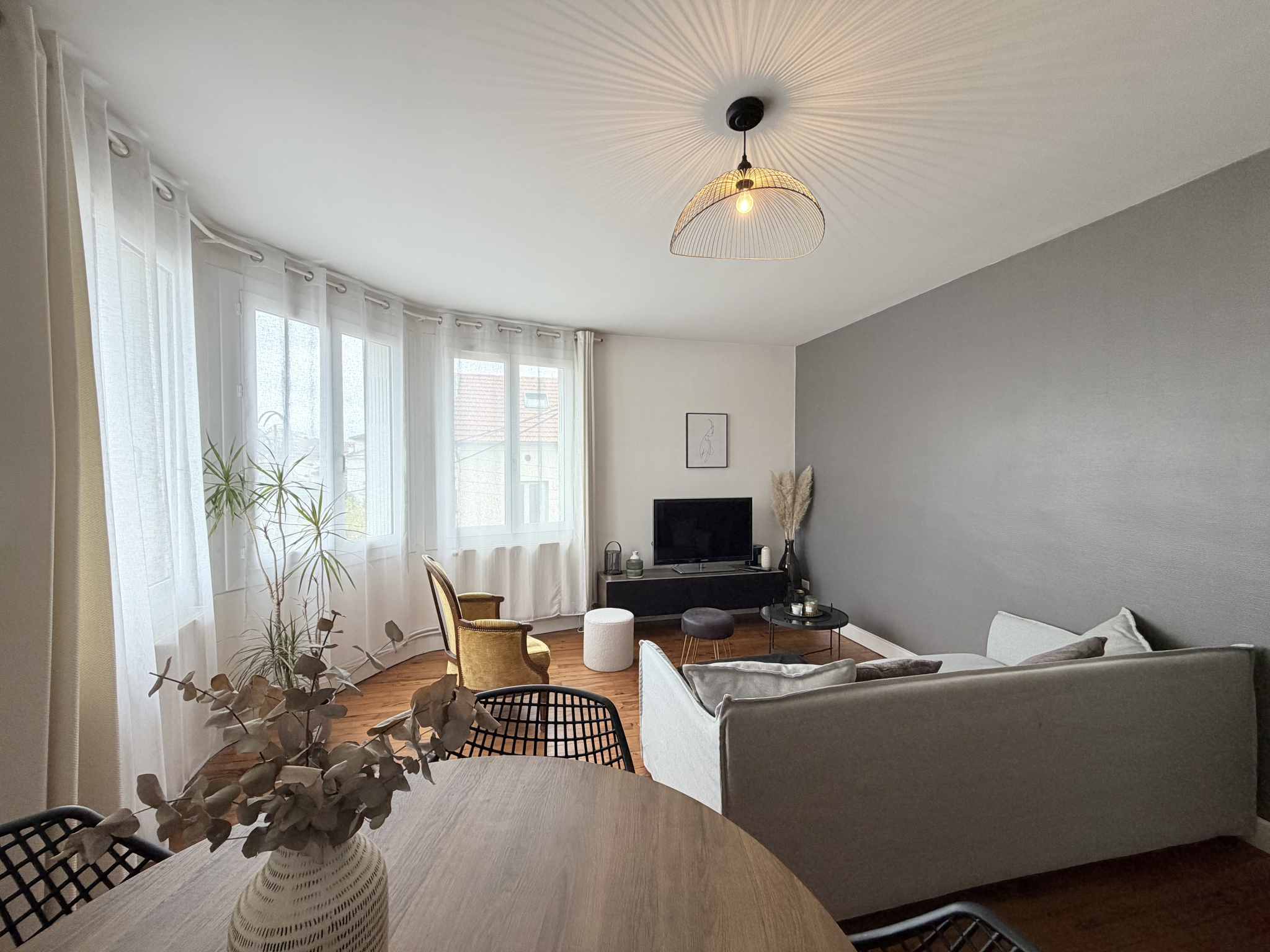 Le séjour, baigné de lumière grâce à sa belle exposition, offre une vue dégagée et sans vis-à-vis.