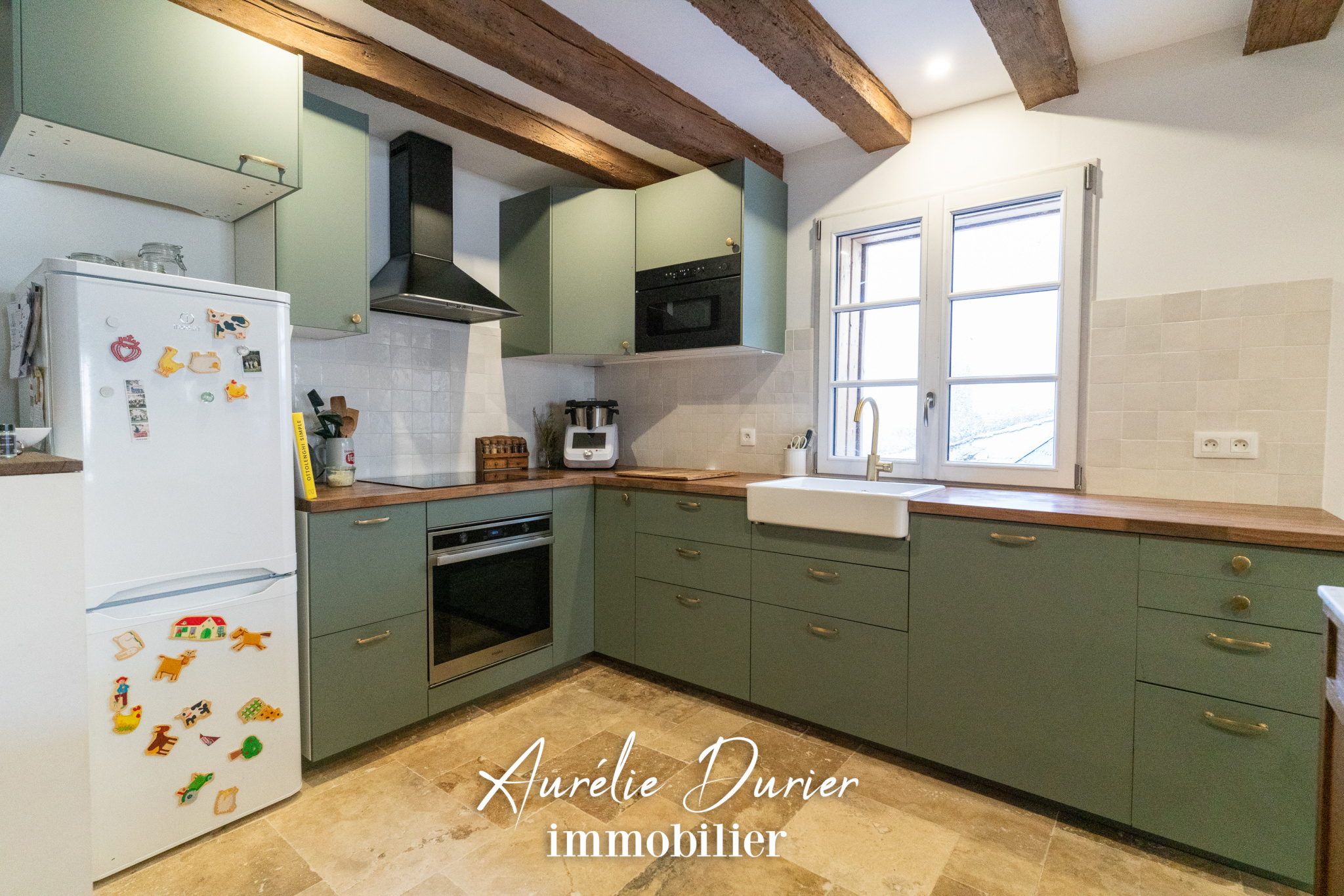 Entièrement rénovée avec des matériaux nobles, cette maison allie charme de l'ancien et confort moderne. Avec ses pierres de taille, sa charpente apparente, son sol en travertin, ses parquets et ses volumes elle vaut véritablement le détour !