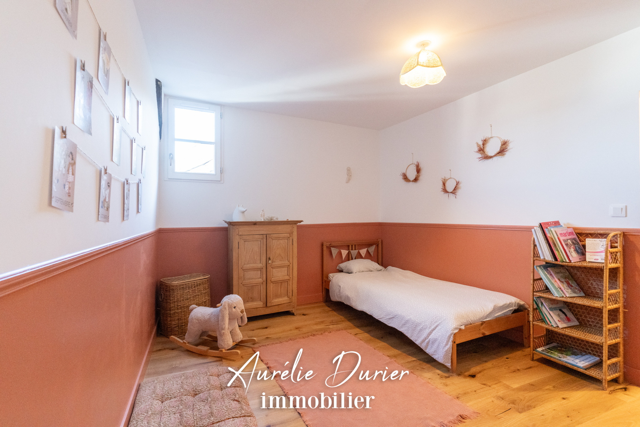 Au premier étage, vous découvrirez un palier desservant deux belles chambres : l'une de près de 13 m2 avec un dressing à aménager, et l'autre de 19 m2 dotée d'une cheminée, d'un dressing et d'un accès direct au salon via un second escalier. Salle de bain lumineuse et spacieuse et des toilettes séparés complète ce niveau.