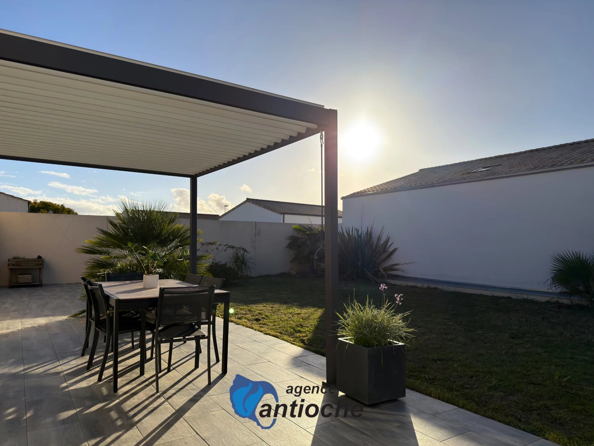 Vous serez séduits par sa belle pièce de vie baignée de lumière grâce à son exposition Sud-Ouest, ouvrant sur une terrasse avec pergola où vous profiterez pleinement des beaux jours et des couchers de soleil.