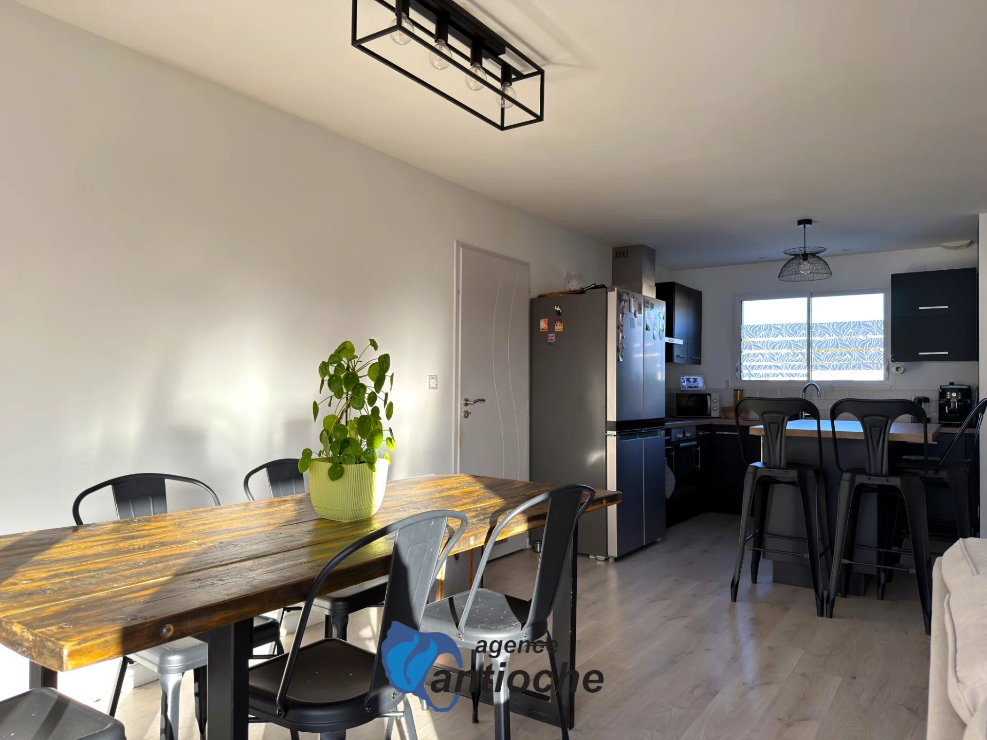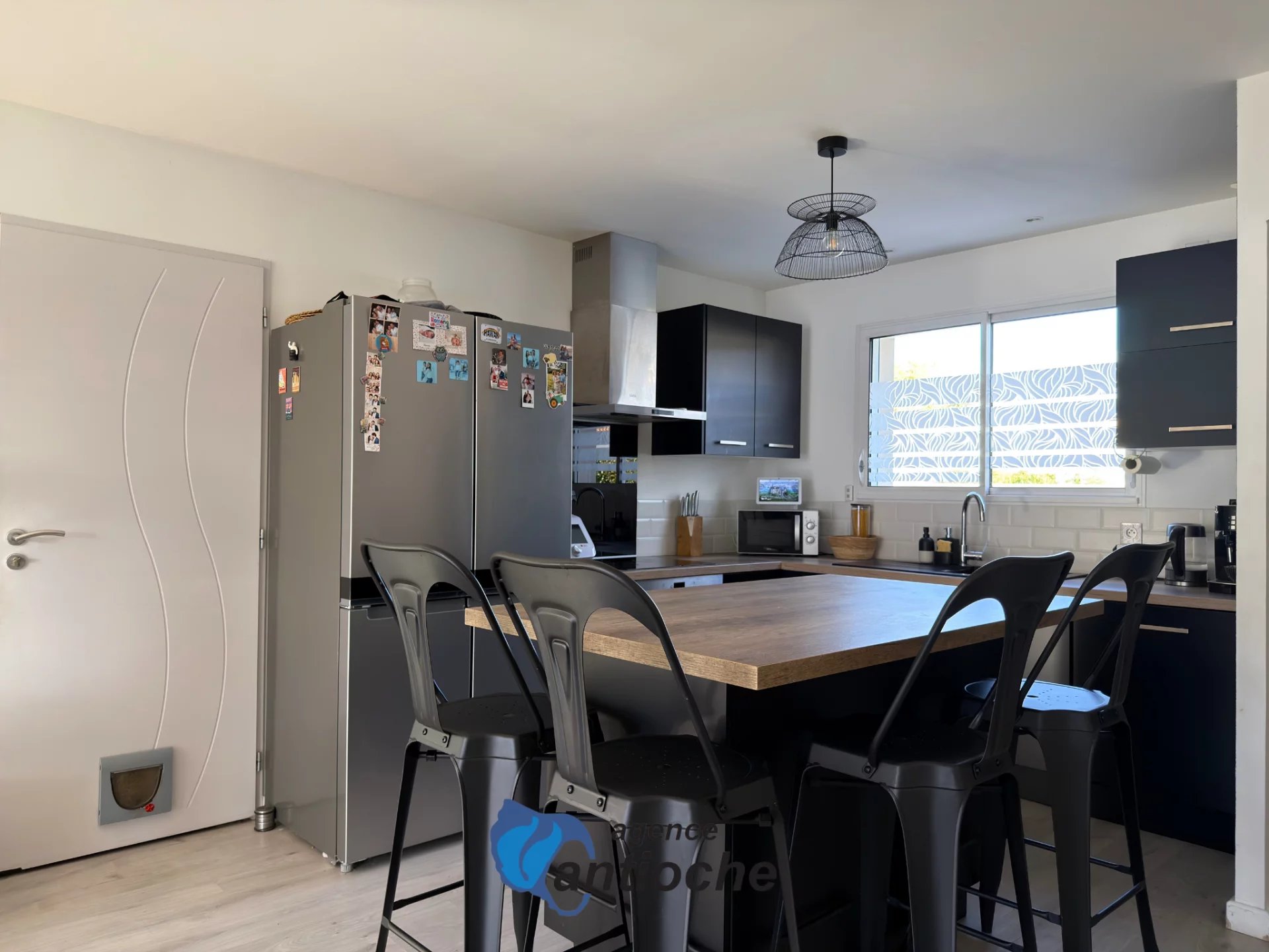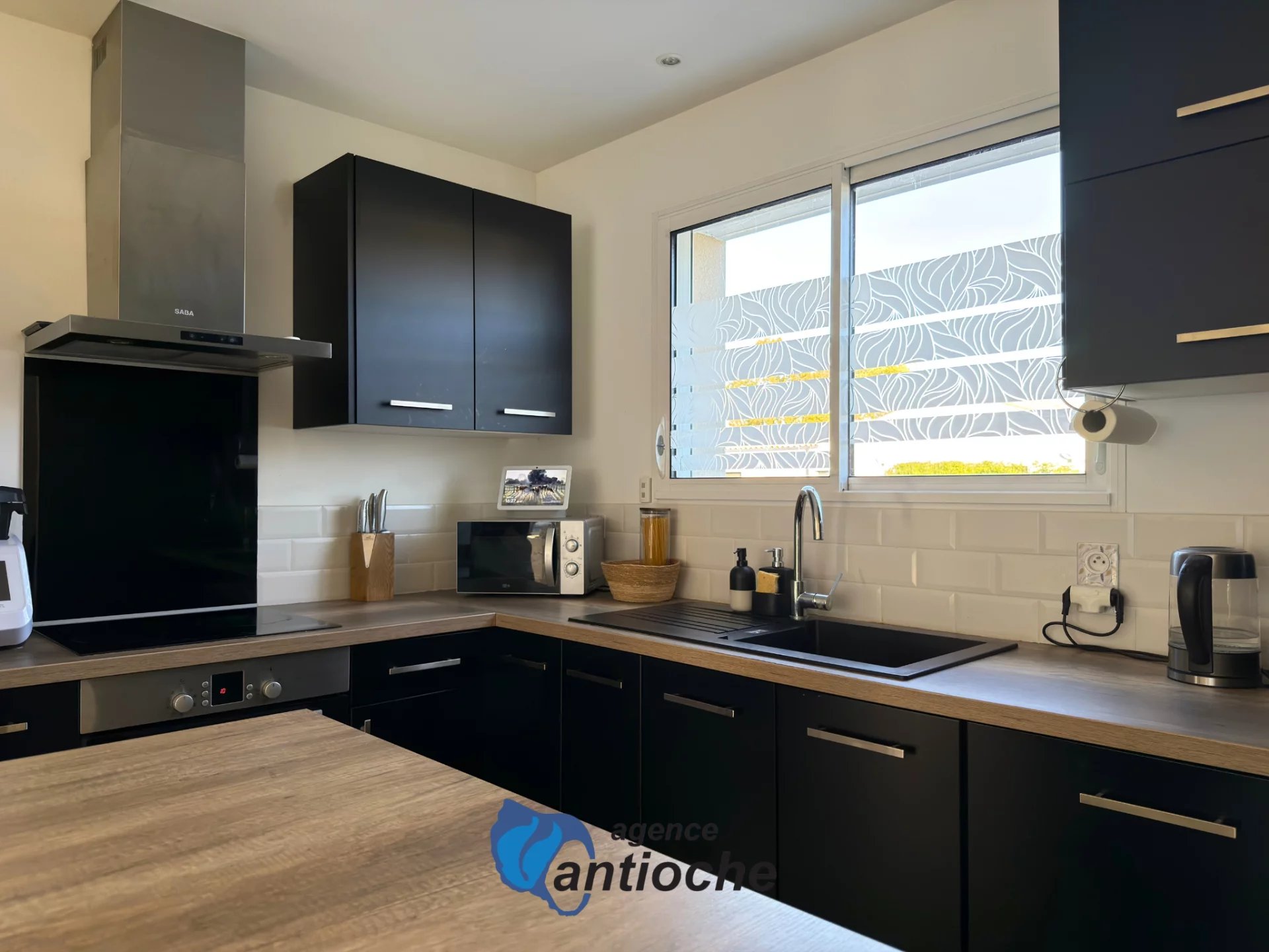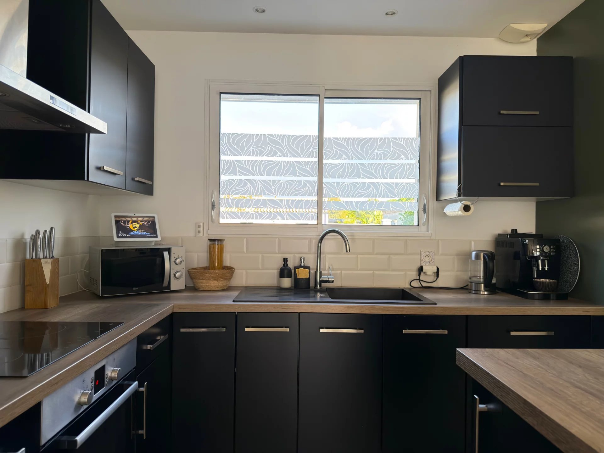 La cuisine aménagée et équipée s’intègre harmonieusement à l’espace de vie, créant une atmosphère conviviale et fonctionnelle.