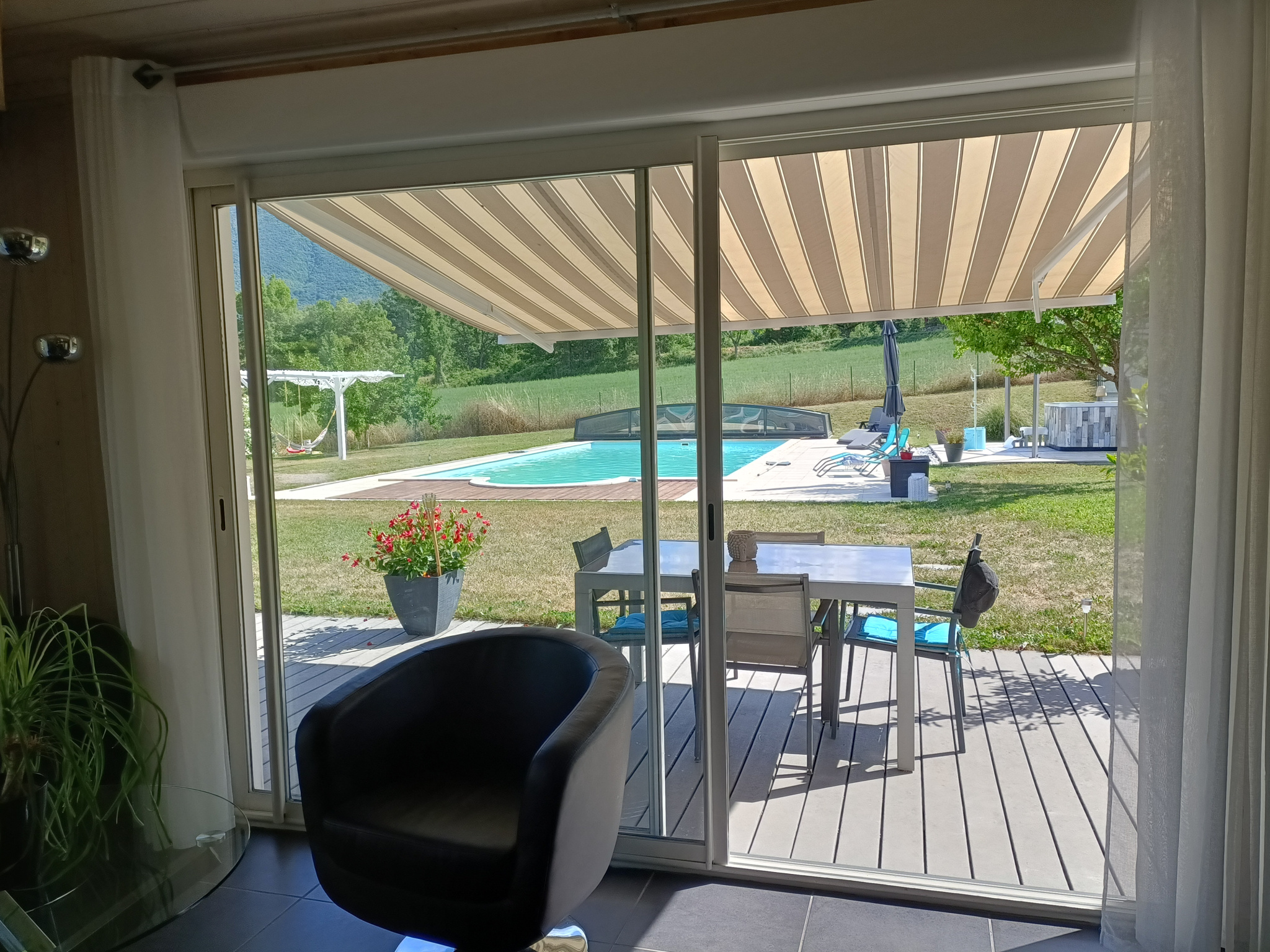 BIEN ÊTRE : DISPOSITION AGRÉABLE DU CORPS ET DE L'ESPRIT » : Voilà exactement ce que vous ressentirez dans cette chaleureuse villa au cachet contemporain, dont les volumes baignés de lumière ouvrent sur un extérieur exceptionnel avec piscine et jacuzzi couverts, dans un magnifique et paisible environnement, à 8 mn de Laragne. En amoureux, en famille ou entre amis, vous adorerez aussi la convivialité de la pièce de vie de 60 m2 avec sa belle cuisine américaine. Le voluptueux espace parental de 30 m2 complète le rez-de-chaussée. L'espace enfants à l'étage se compose de deux chambres avec placards et d'une salle d'eau avec WC, distribués par un pallier- bibliothèque. Un hall d'entrée avec placards, une chaufferie buanderie, un atelier abrité sous le vaste carport, un chalet de jardin, les volets roulants électriques, l'arrosage automatique, les abris piscine et jacuzzi récents manoeuvrables d'une main, la performance énergétique (C), ... concourent à sa fonctionnalité et son confort. Le terrain de plus de 1800 m2, constructible, divisible, clôturé, paysagé et planté de nombreux fruitiers, accueille un grand espace de stationnement et un boulodrome et bénéficie de l'eau du canal. Posez vos valises (et oubliez vos soucis !) dans ce havre de paix en pleine nature à 20 mn de Sisteron, que vous propose votre agence Tallard Immo ! Annonce proposée par Nathalie PONS - Agent commercial Rsac Gap 881 252 274 000 17. Honoraires d'agence charge acquéreur : avantage fiscal car pas de frais de notaire sur nos honoraires.