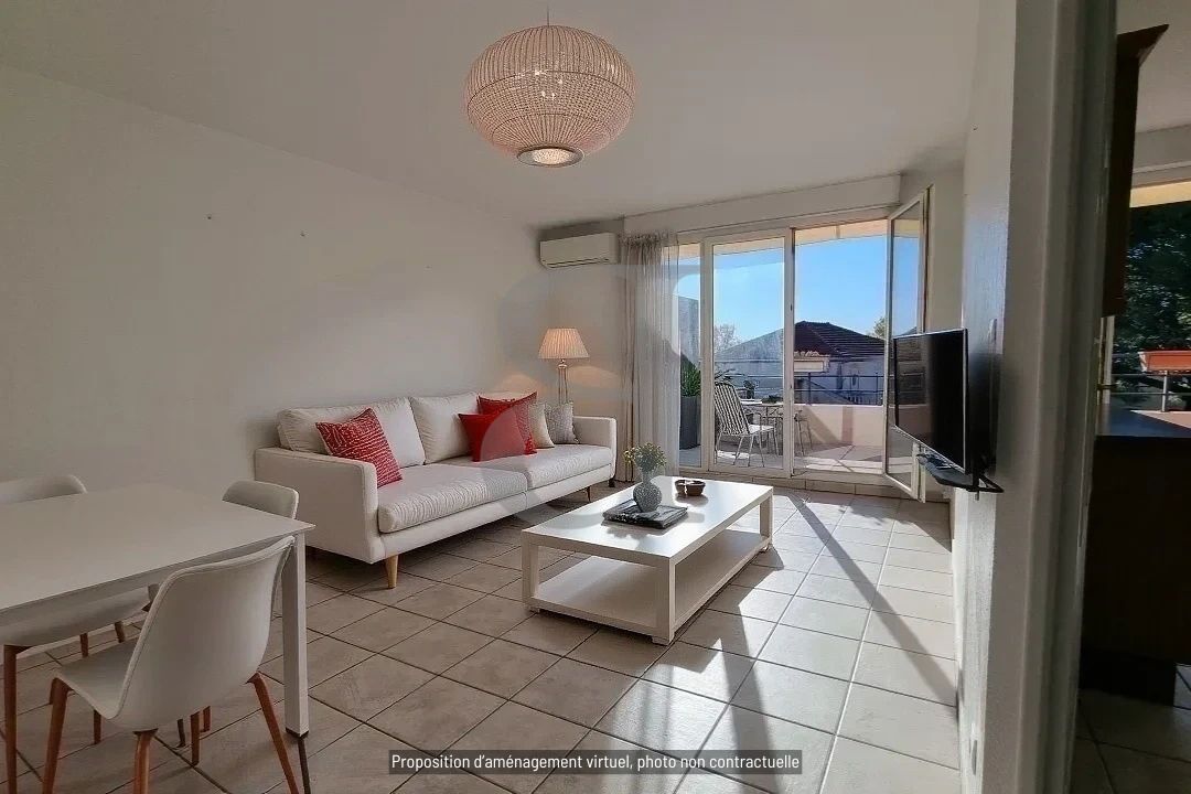 L'appartement composé d'un séjour de 21 m², un hall d'entrée avec placard, une cuisine indépendante, 2 chambres avec placards, une salle d'eau et un toilette indépendant offre tout le confort nécessaire avec le double vitrage et la climatisation réversible.