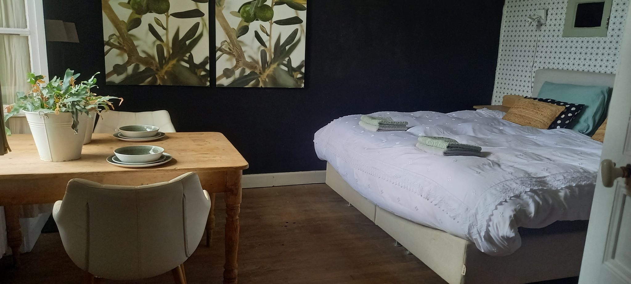 Cette maison magnifiquement rénovée avec 2 chambres d'hôtes et un véritable gîte est située à côté d 'une route de campagne très calme.