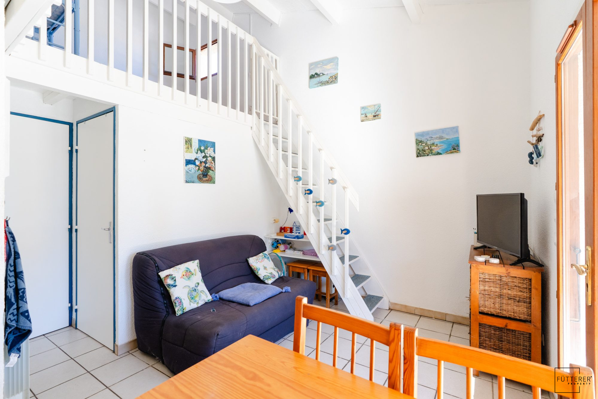 Fütterer Property vous présente à Gruissan - Les Ayguades :- EN EXCLUSIVITÉ : Charmant pavillon d'angle d'une surface habitable de 30,63 m², comprenant un cellier attenant et une agréable terrasse carrelée exposée Est, offrant un aperçu sur la lagune.