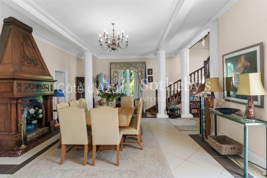 Située dans un quartier résidentiel recherché de Mandelieu-la-Napoule, cette propriété de style Belle Époque, édifiée en 1920, offre environ 390 m² de surface habitable sur un terrain paysager de 2 500 m².