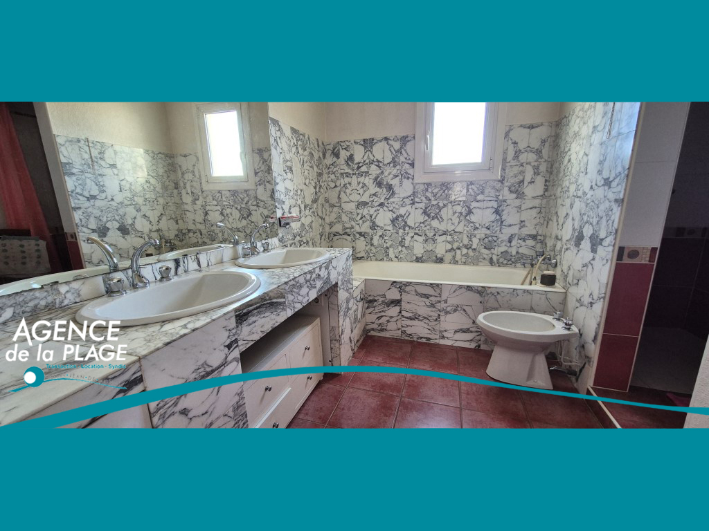 Entrée/dégagement, belle pièce de vie et véranda donnant sur patio, deux chambres, bureau, salle de bains avec baignoire et douche, wc. Buanderie, cave à vins.