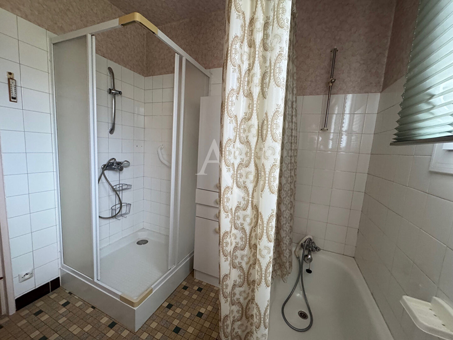 A l'étage : entrée et dégagement avec placards, séjour de 27 m² avec cheminée (insert), cuisine aménagée, 2 chambres, salle de bains aménagée + douche,
