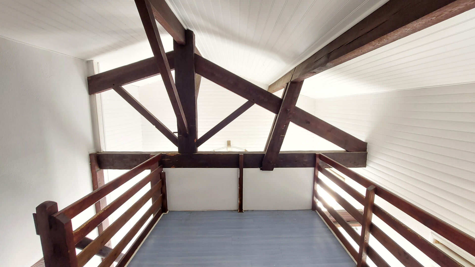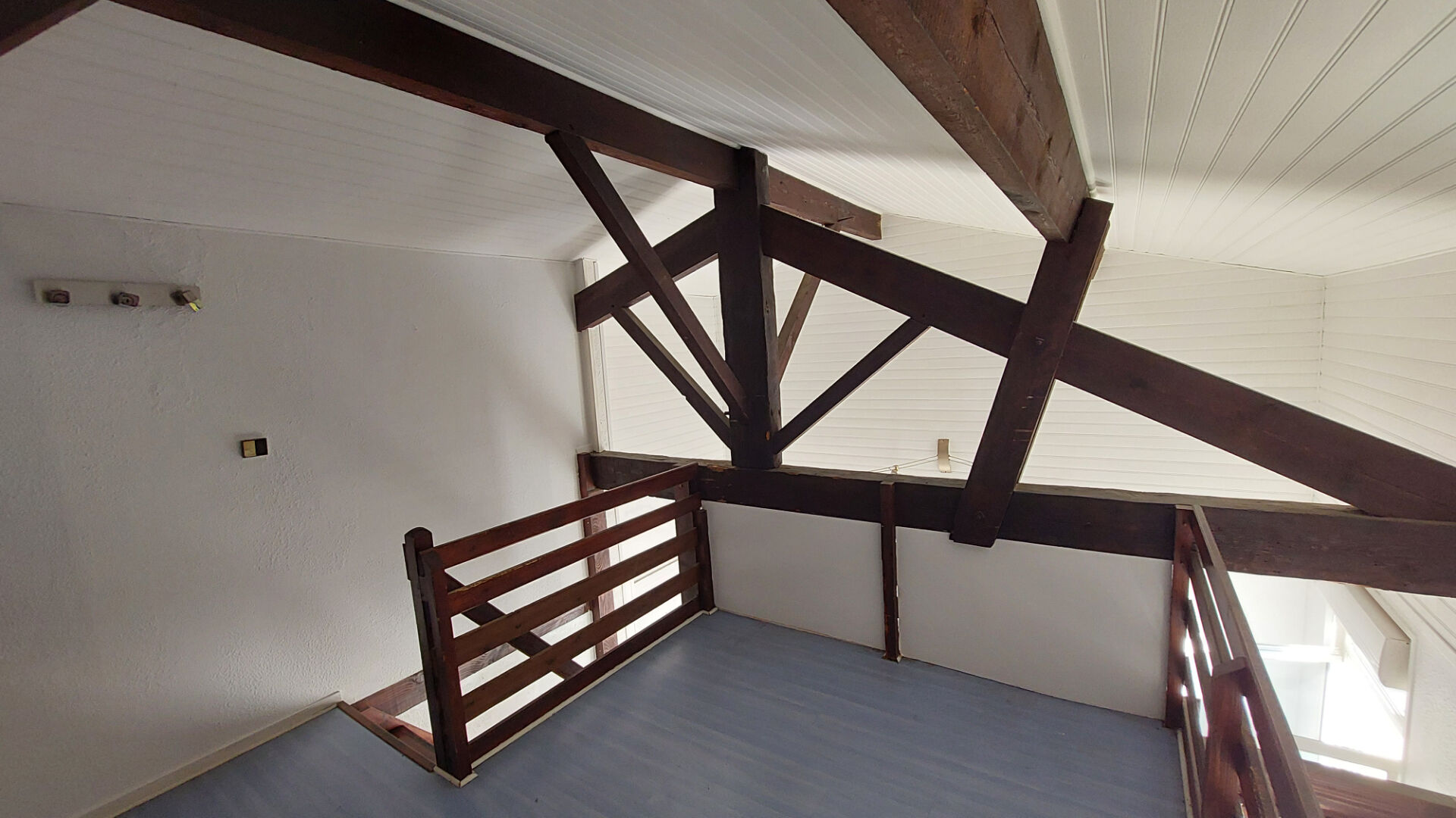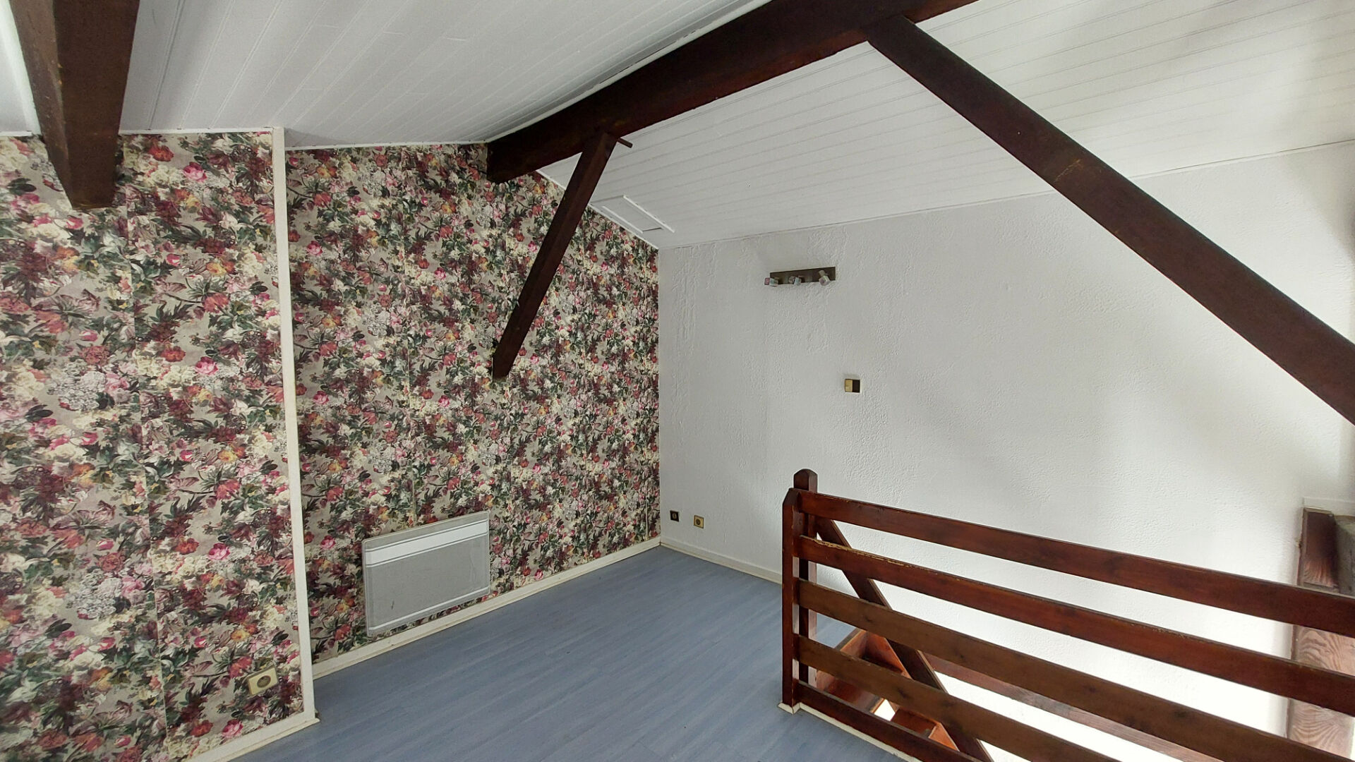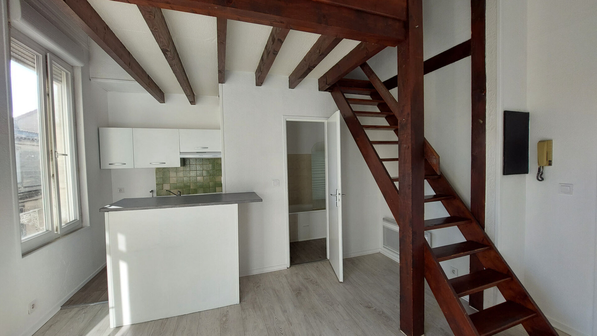 Ce T1 sous combles séduit par sa belle hauteur sous plafond, ses poutres apparentes et sa mezzanine qui offre un espace nuit agréable.