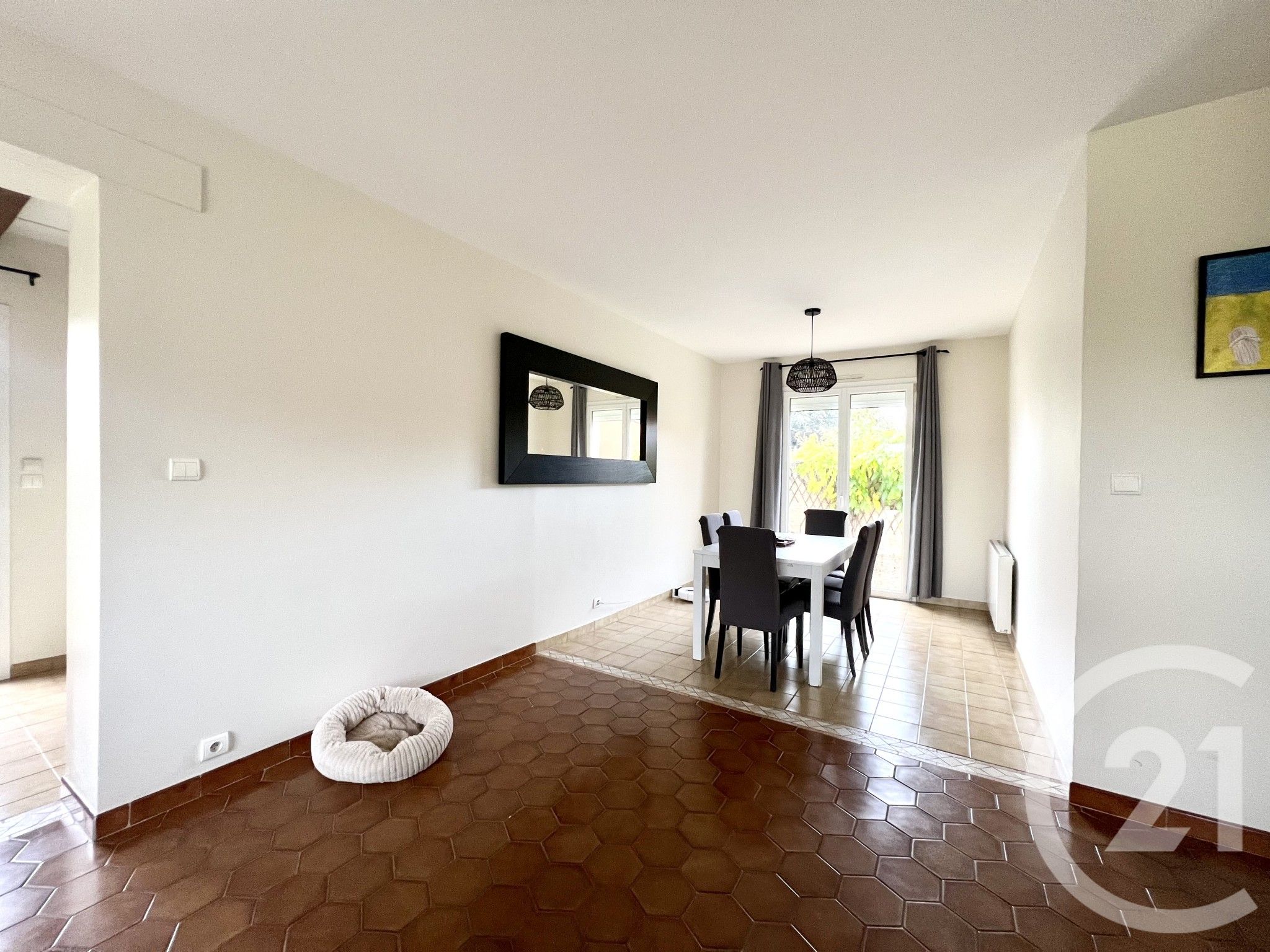Elle se compose d'une belle entrée, d'un espace de vie lumineux avec séjour donnant sur le jardin, ainsi que d'une cuisine aménagée et entièrement équipée. L'espace nuit, bien distinct, offre trois agréables chambres avec placards, une salle de bains et des toilettes séparées.